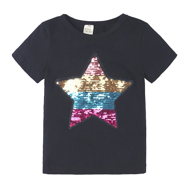 Kids Casual Star Sequined Round Neck Short-sleeved T-Shirt