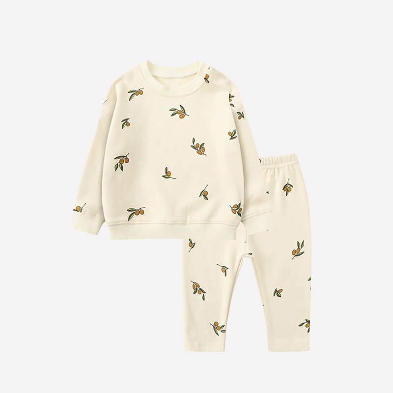 Kids Color Piece Olive Cotton Pattern Tops And Pants Set