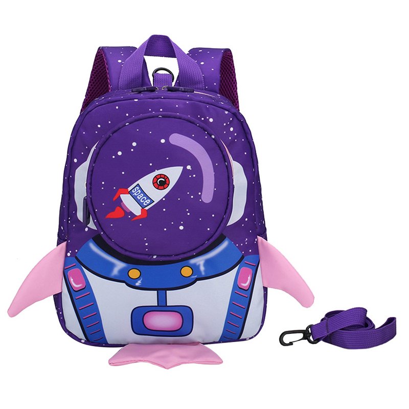 Kids Cute Cartoon 3D Rocket Anti-loss Rope Backpack