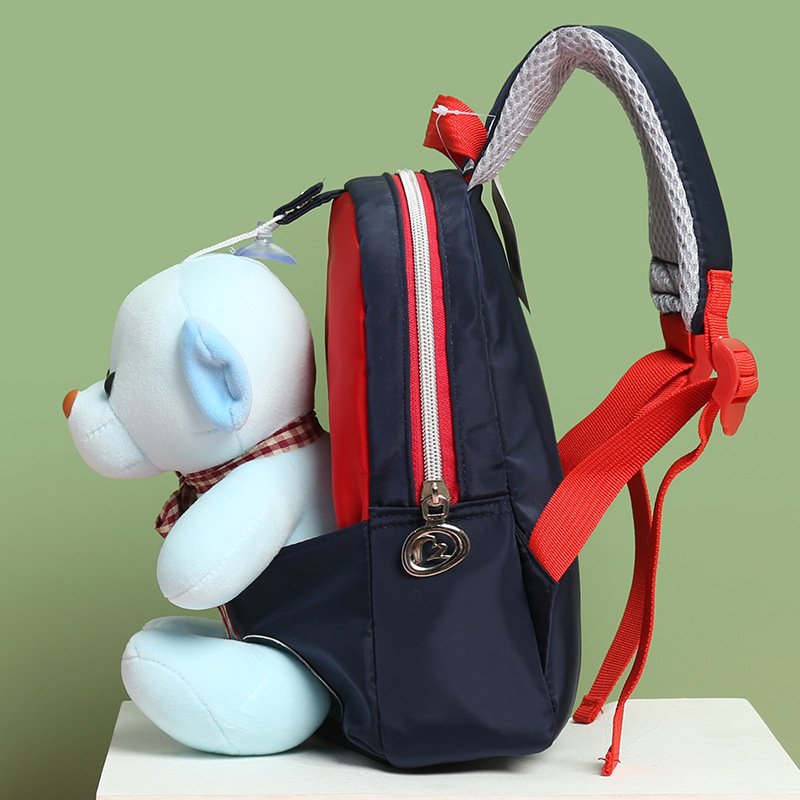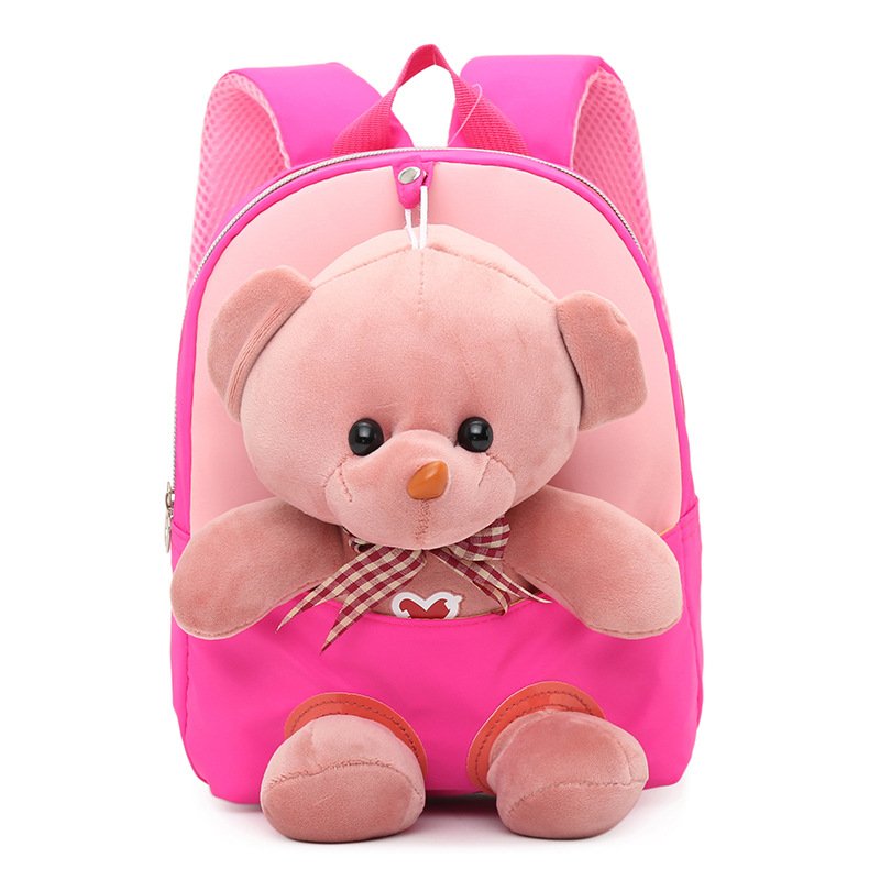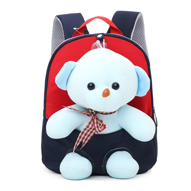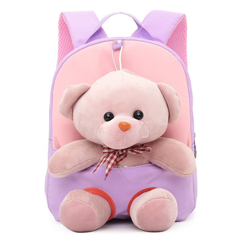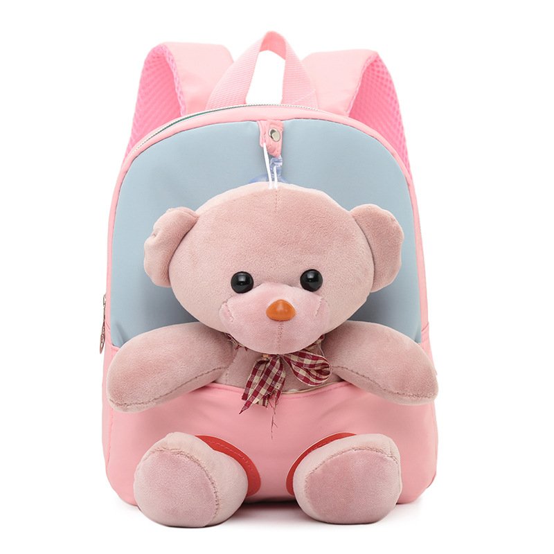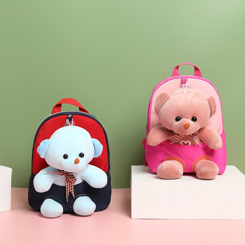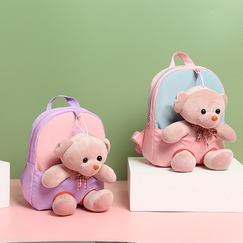 Kids Cute Cartoon Bear Plush Doll Color Blocking Backpack