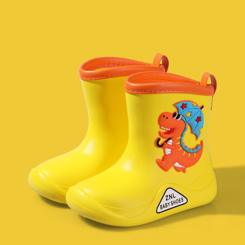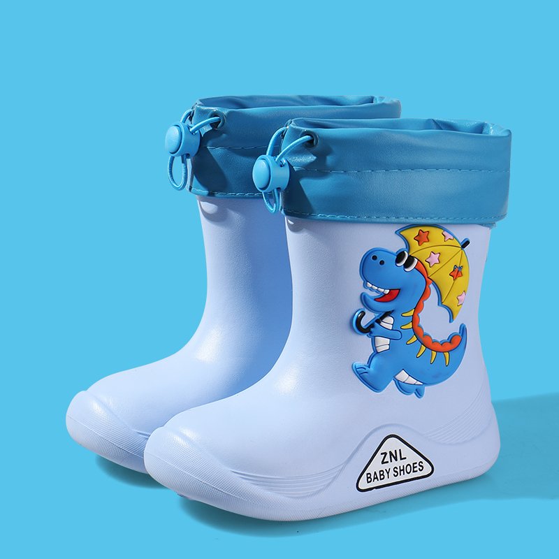 Kids Cute Cartoon Dinosaur Pattern Removable Plush Rainboots Waterproof
