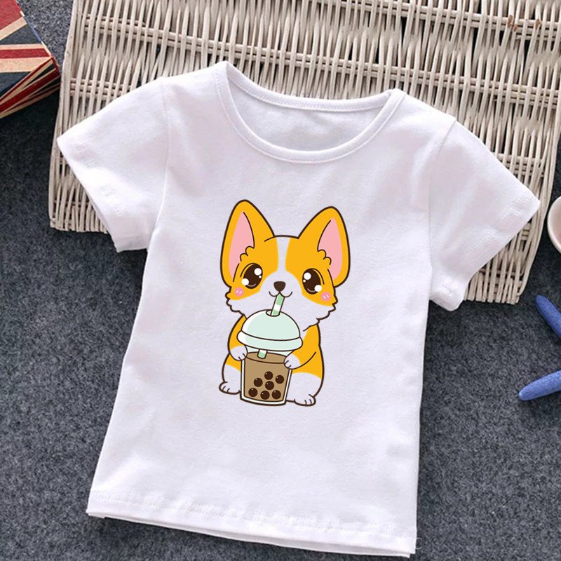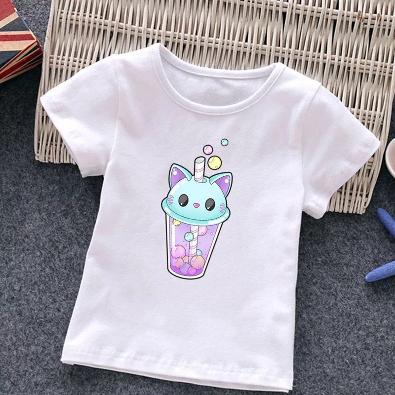 Kids Cute Cartoon Panda Graphic Milk Tea Printed Round Neck Short Sleeve Casual T-Shirt
