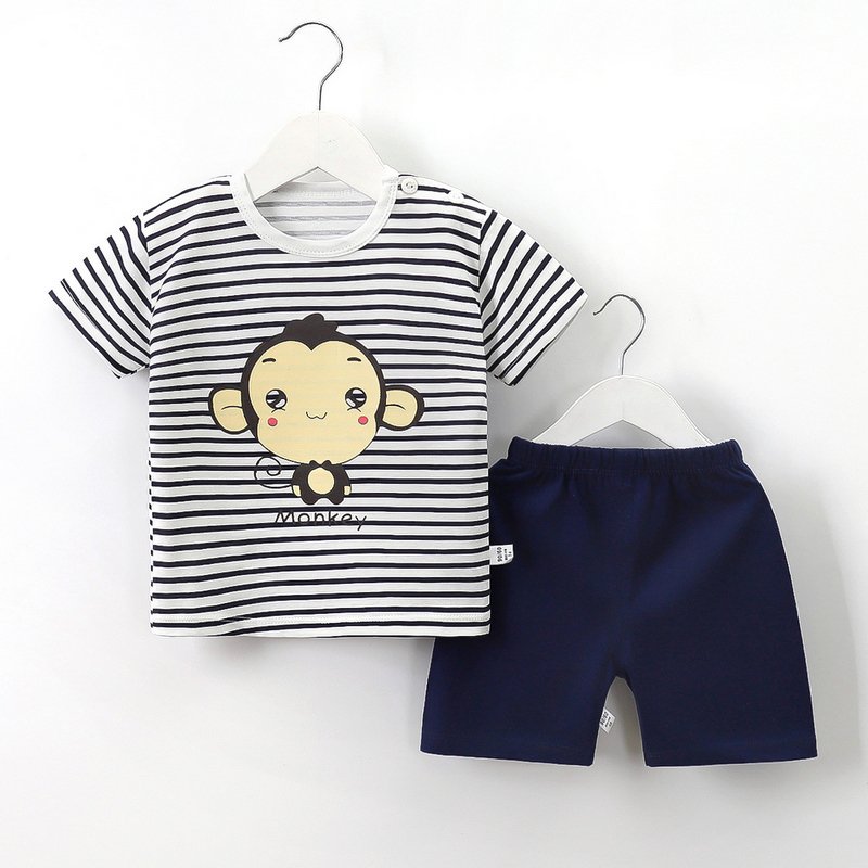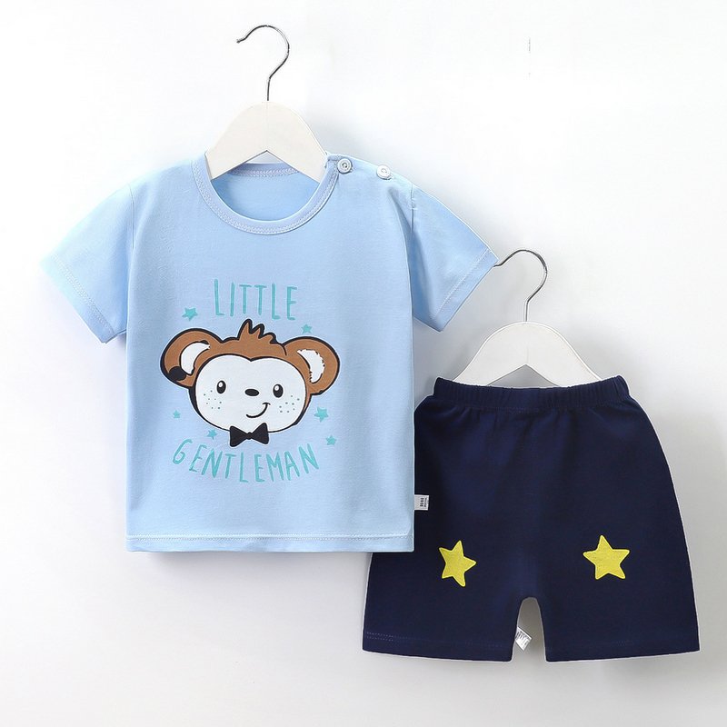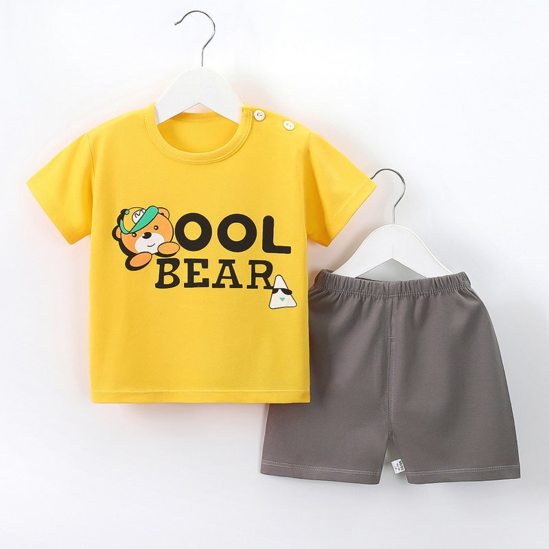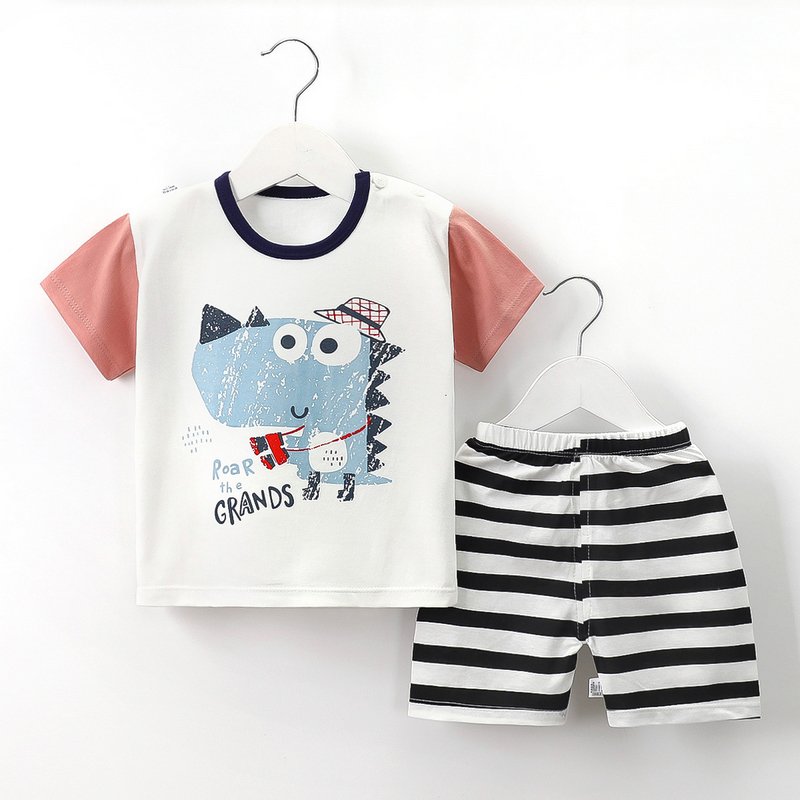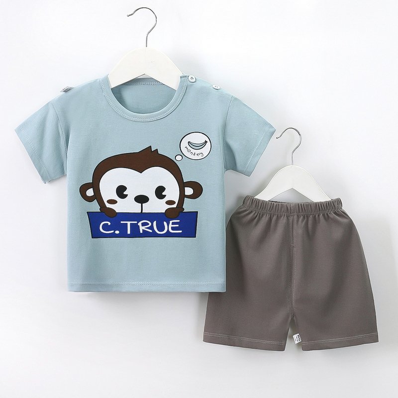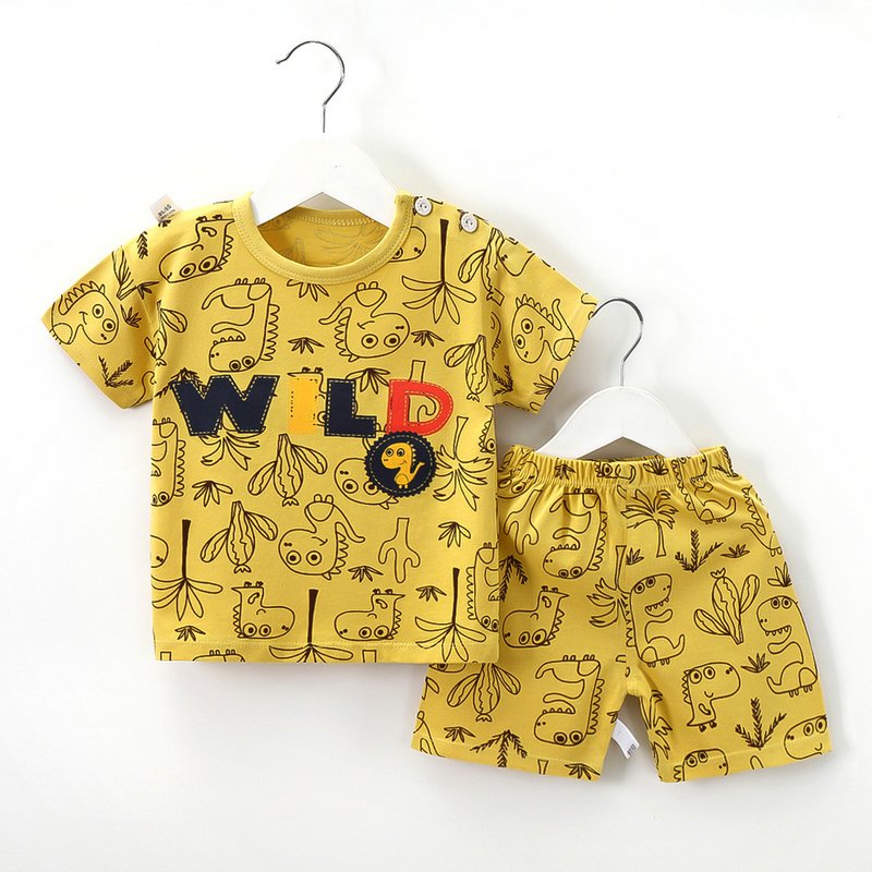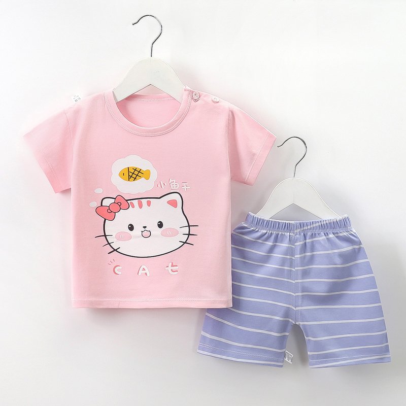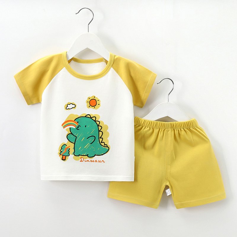 Kids Cute Cartoon Pattern Round Neck Short Sleeve Casual T-Shirt And Elastic Loose Shorts Set