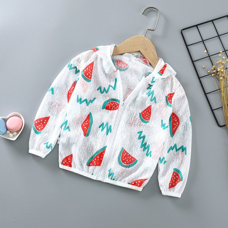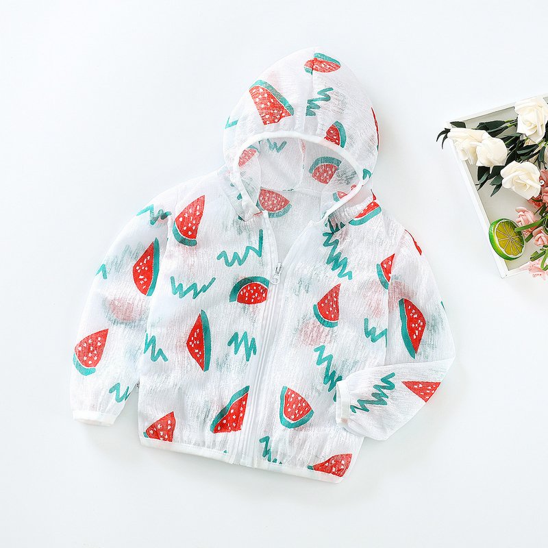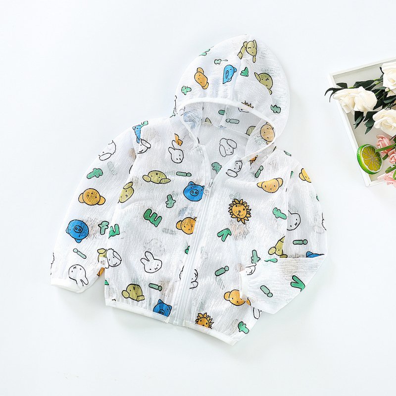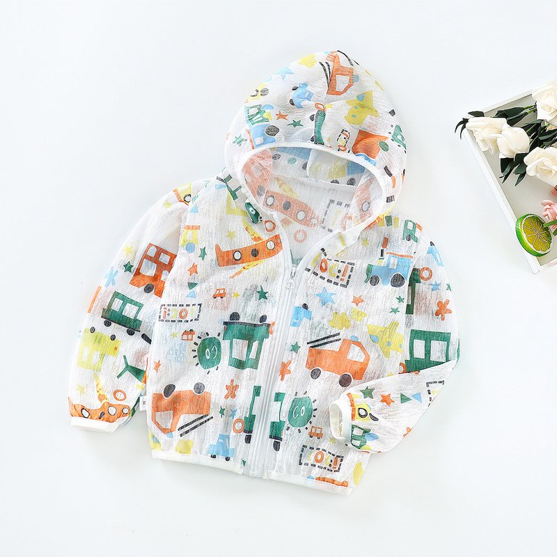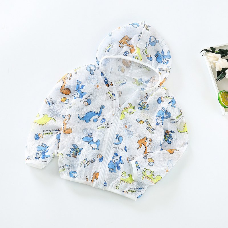 Kids Cute Cartoon Pattern Sunscreen Breathable Hooded Thin Coat