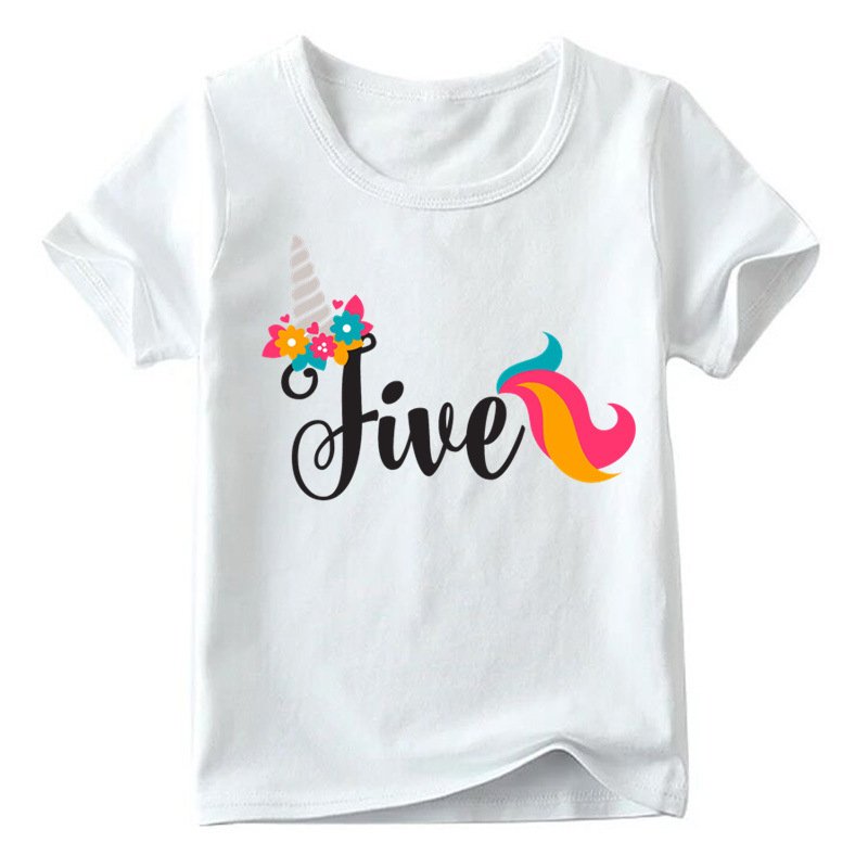 Kids Cute Cartoon Unicorn Number Pattern Round Neck Short Sleeve Birthday Loose T-Shirt