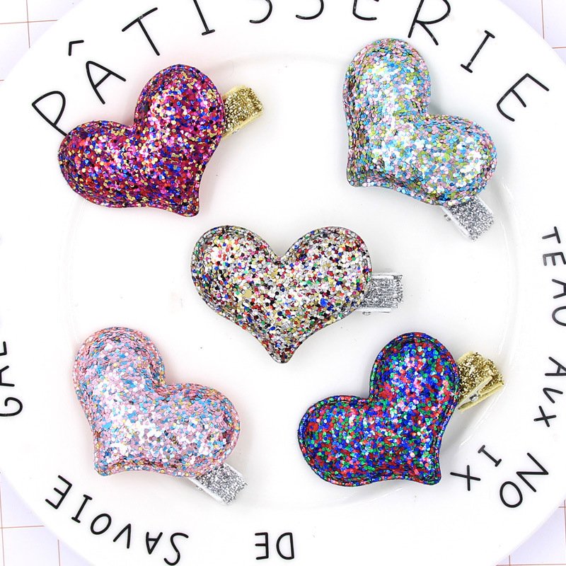 Kids Cute Heart Shaped Decor Glitter Bobby Pin