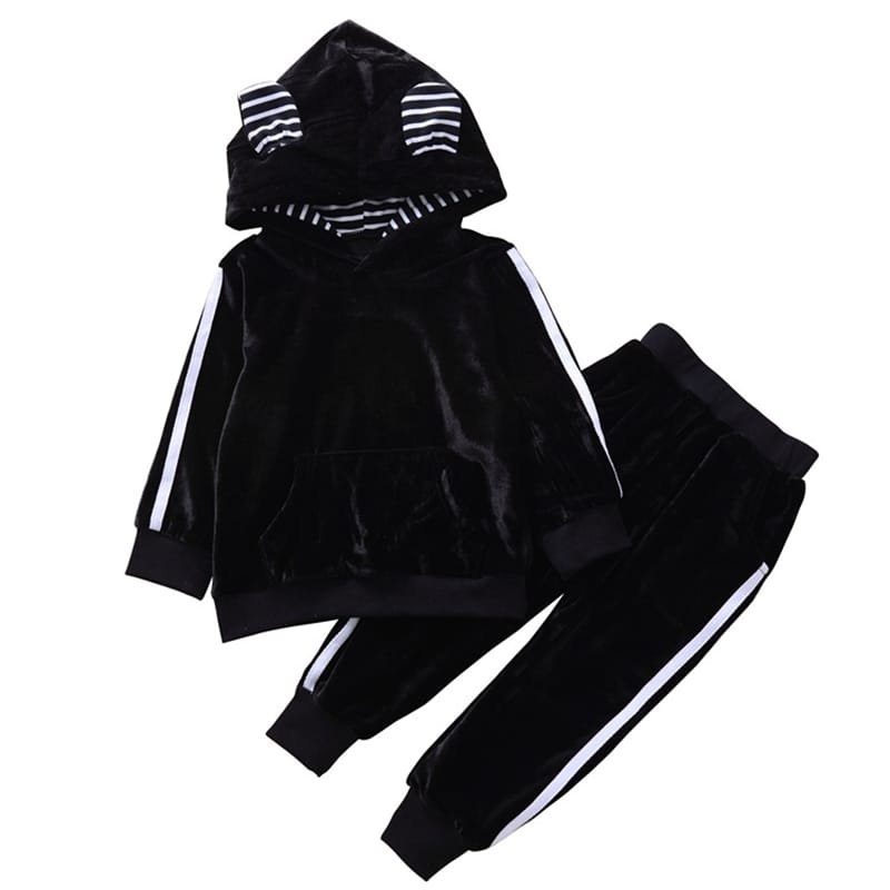 Kids Cute Rabbit Ear Design Hoodie And Pants Set
