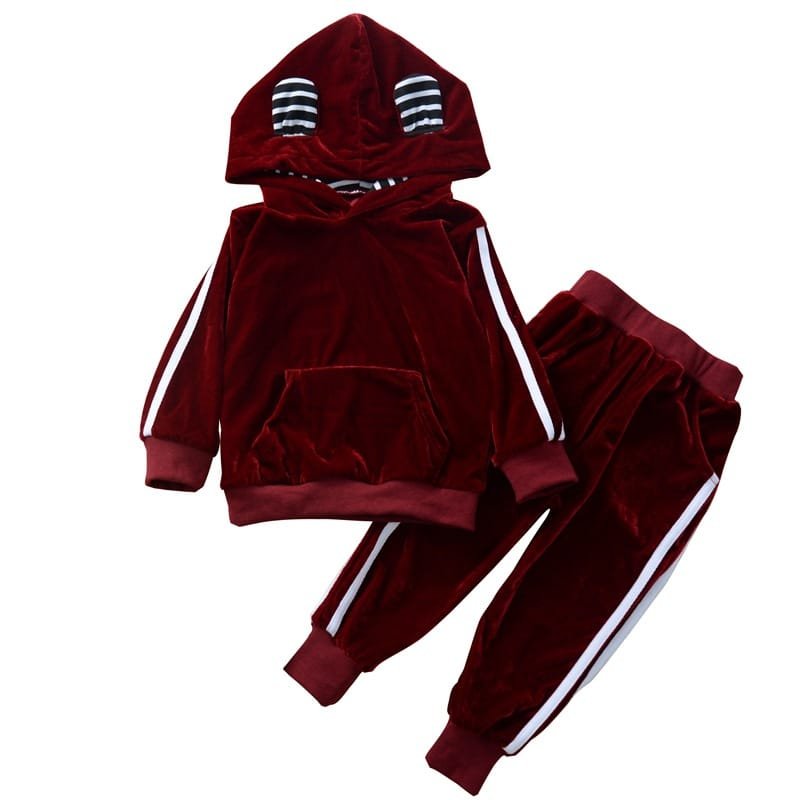 Kids Cute Rabbit Ear Design Hoodie And Pants Set