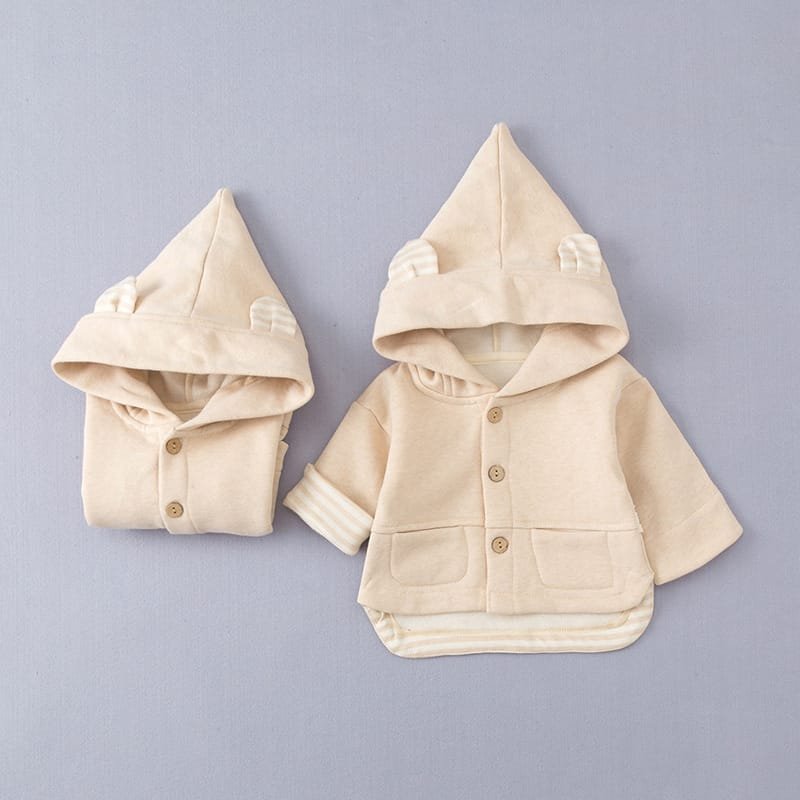 Kids Cute Solid Color Single-breasted Hooded Coat