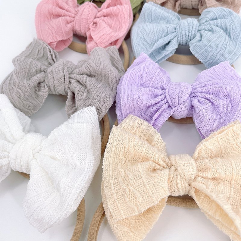 Kids Cute Solid Color Stripe Bow Headband