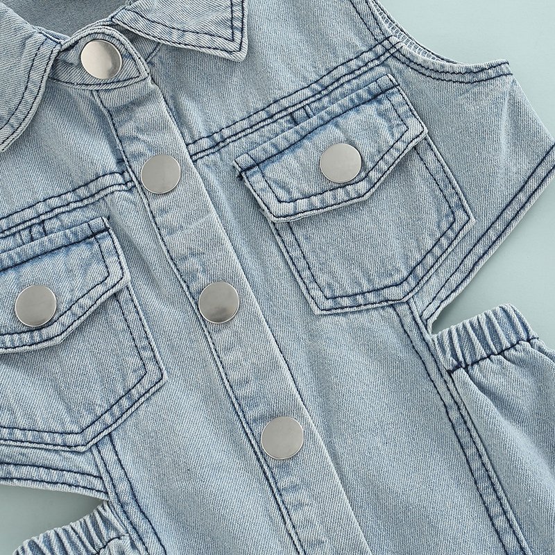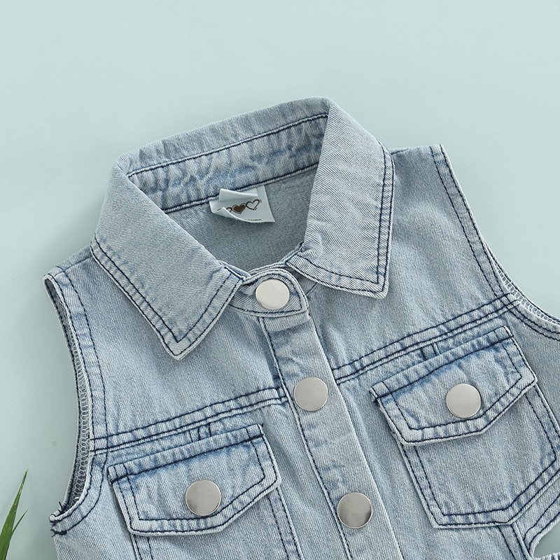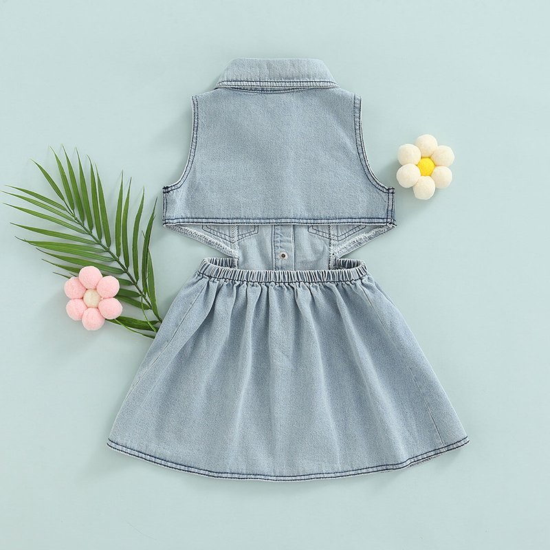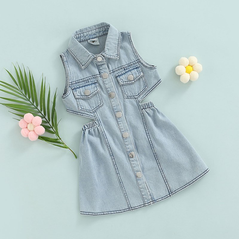 Kids Fashion Backless Sleeveless Denim Dress