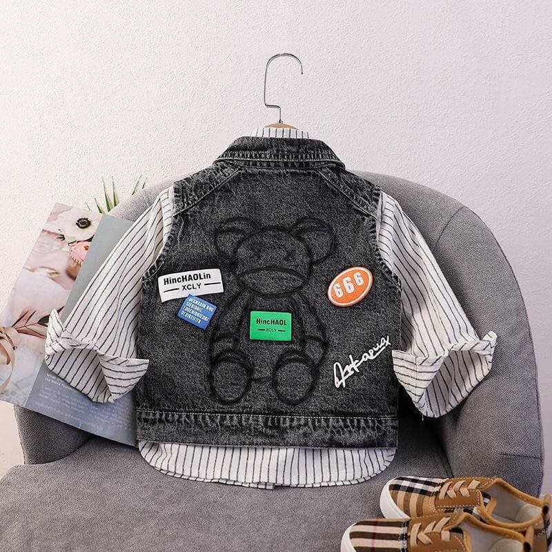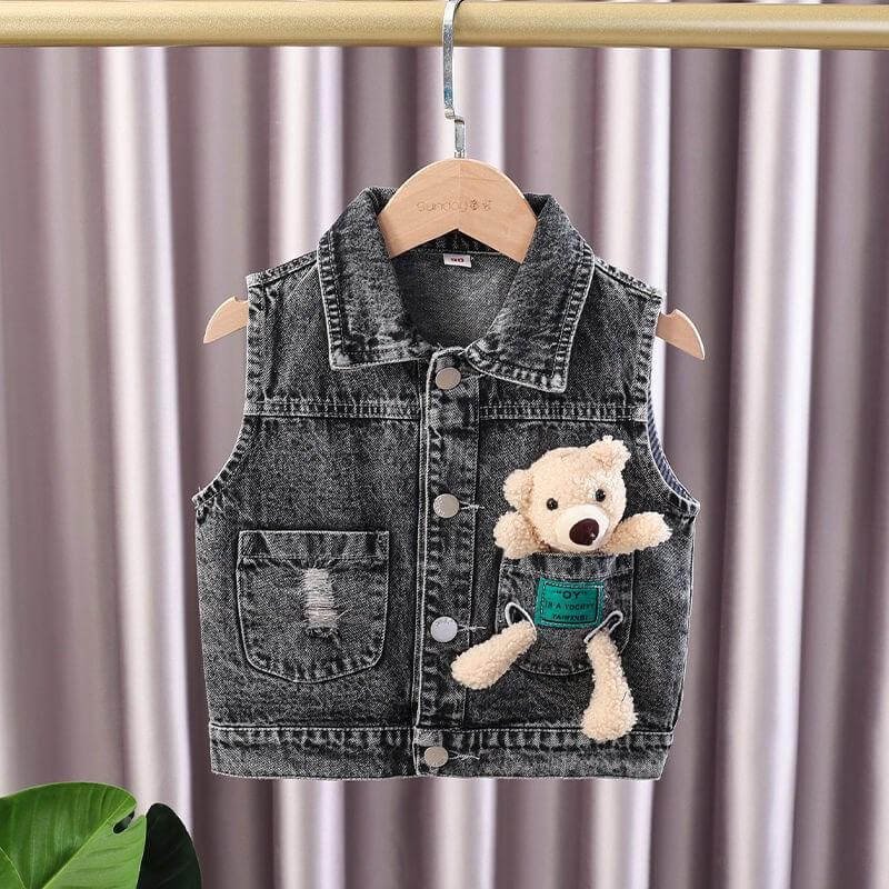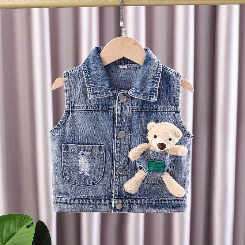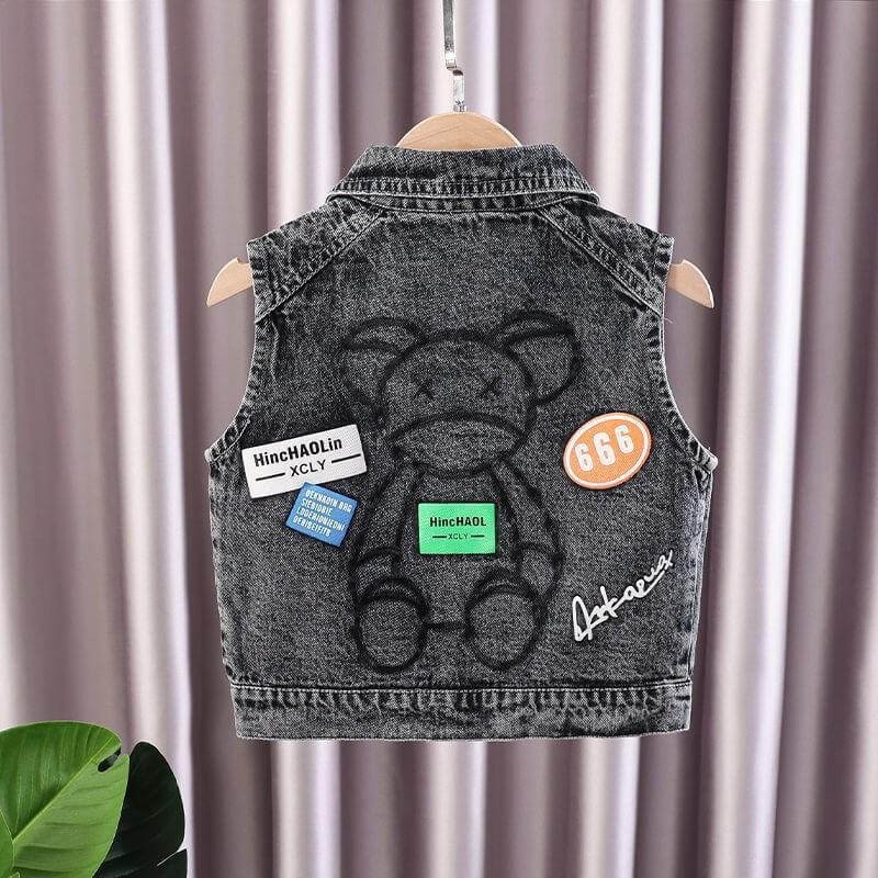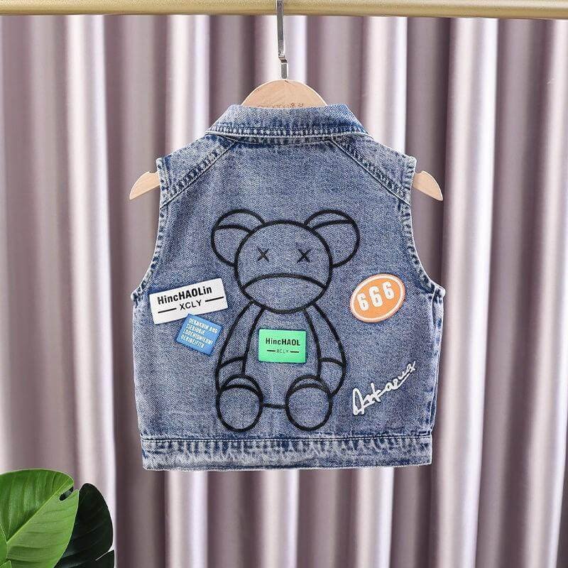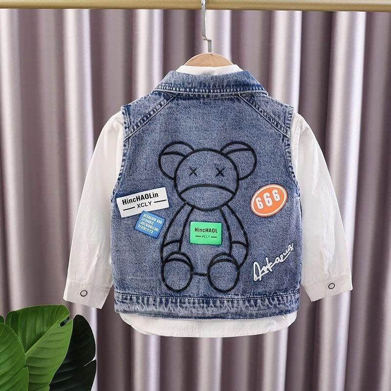 Kids Fashion Bear Decor Single-breasted Denim Vest