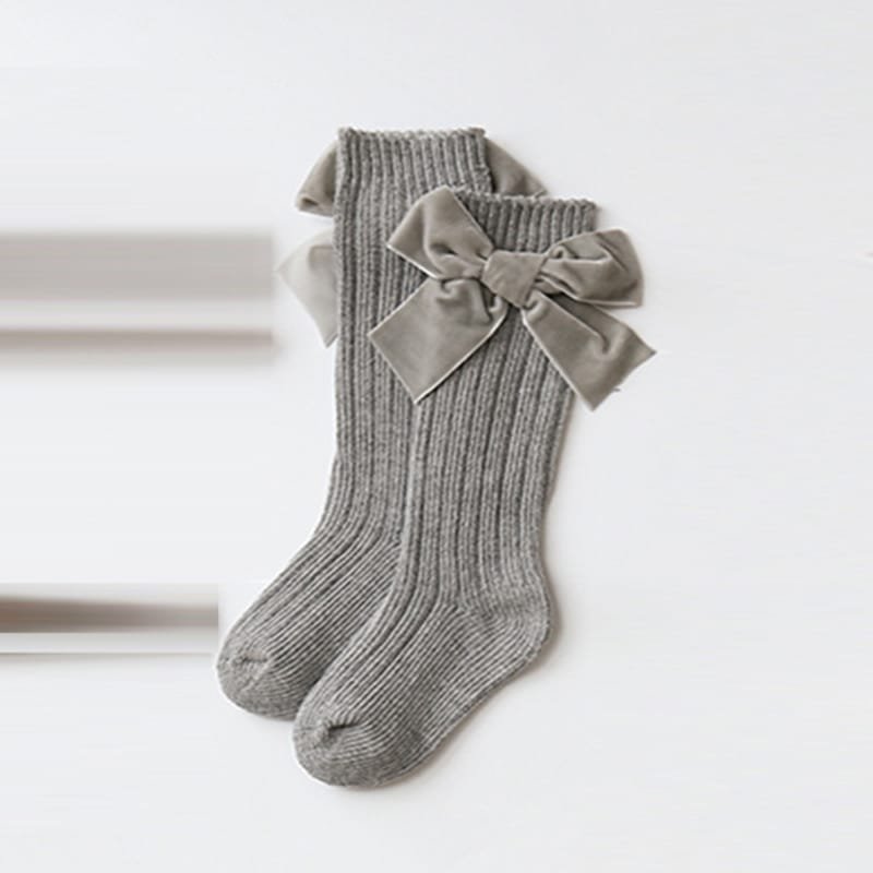 Kids Fashion Bowknot Decor Solid Color Socks