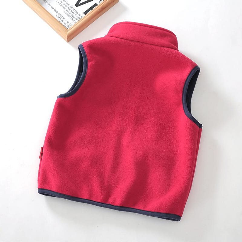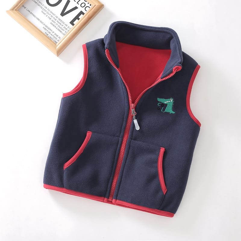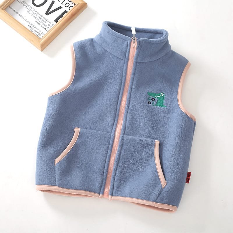 Kids Fashion Cartoon Embroidery Zipper Design Polar Fleece Warm Vest