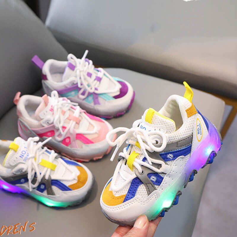 Kids Fashion Color Blocking Lace-up Sneakers