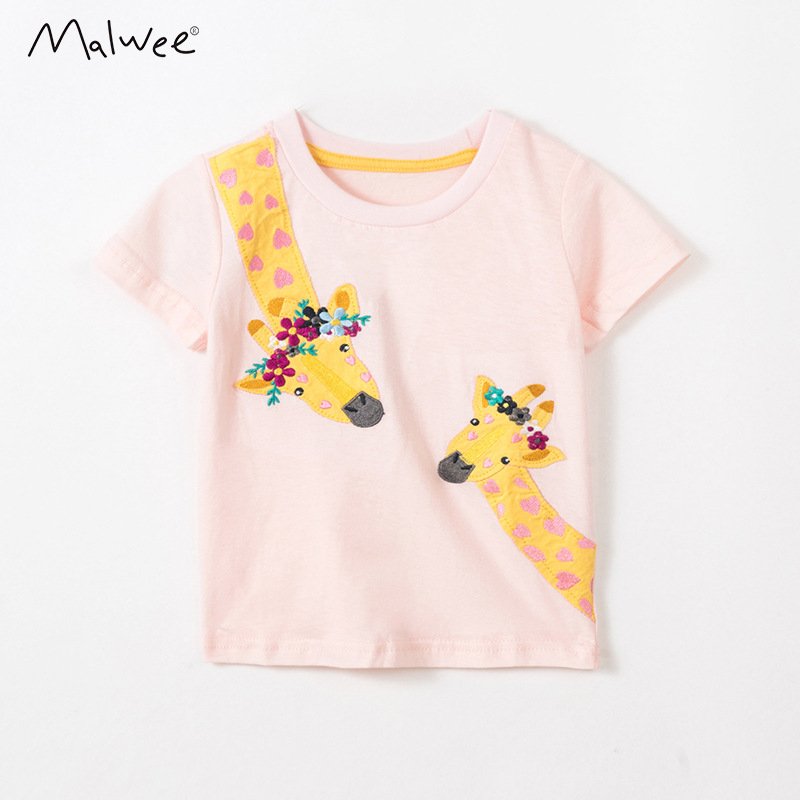 Kids Fashion Girls Giraffe Animal Print Crew Neck Short Sleeve Top