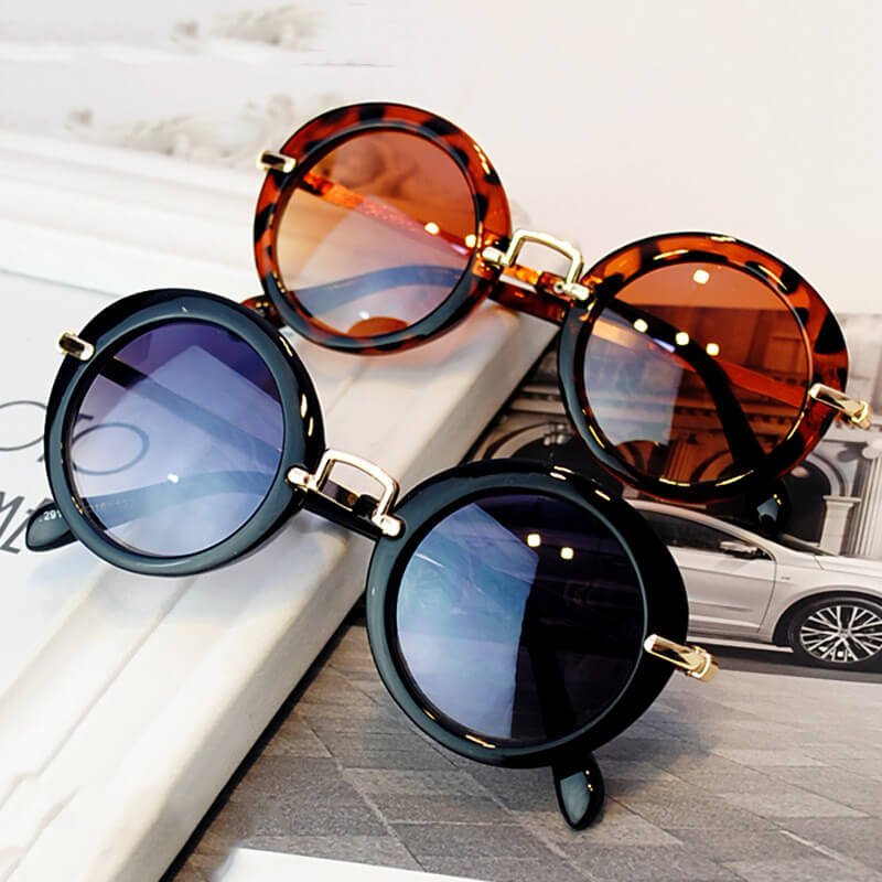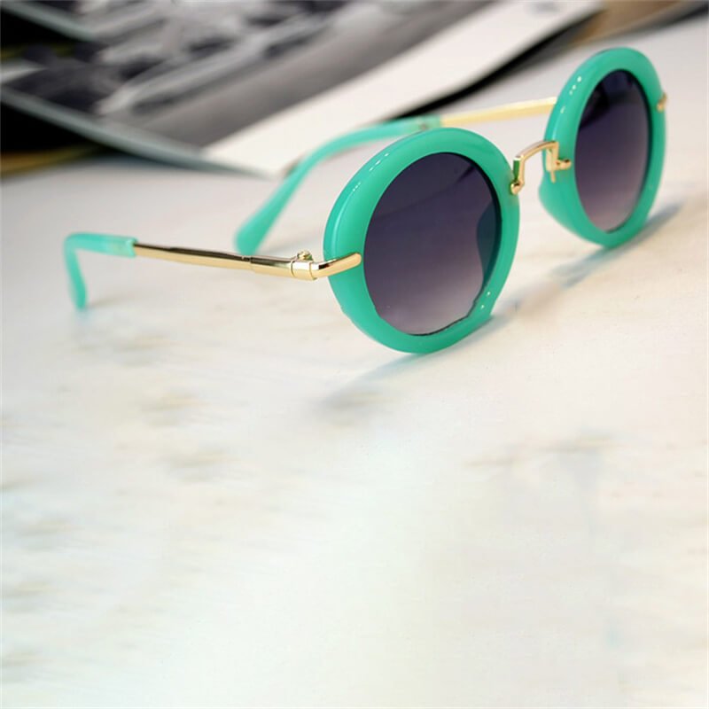 Kids Fashion Round Frame Metal Bridge Design Sunglasses