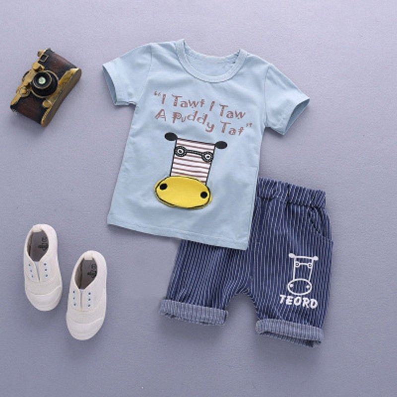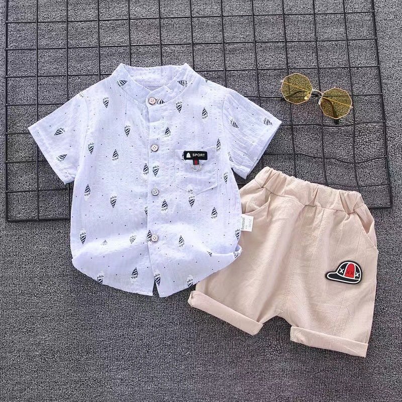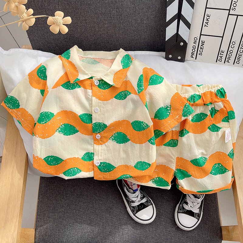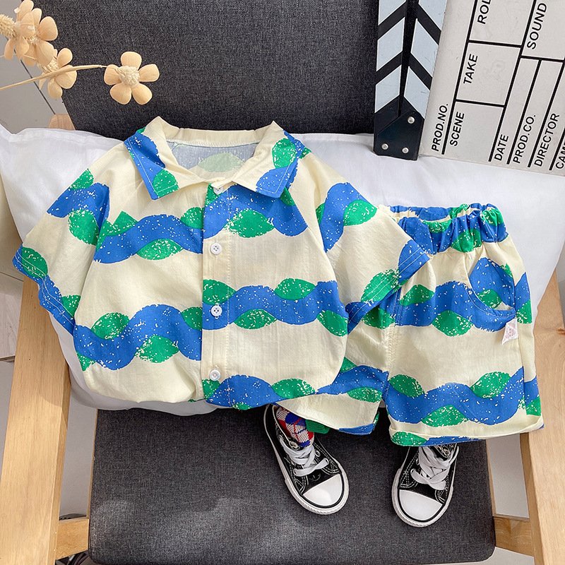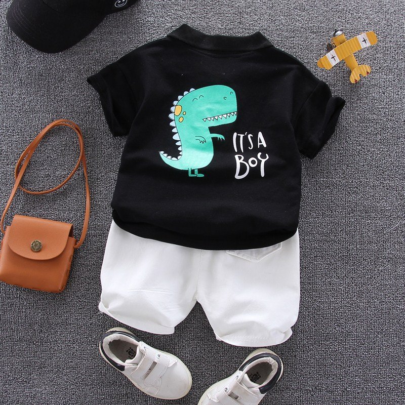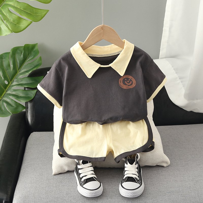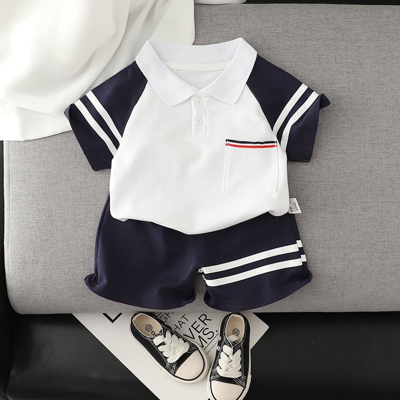 Kids Fashion Short-Sleeved Stripe Polo Shirt And Short Two-Piece Set