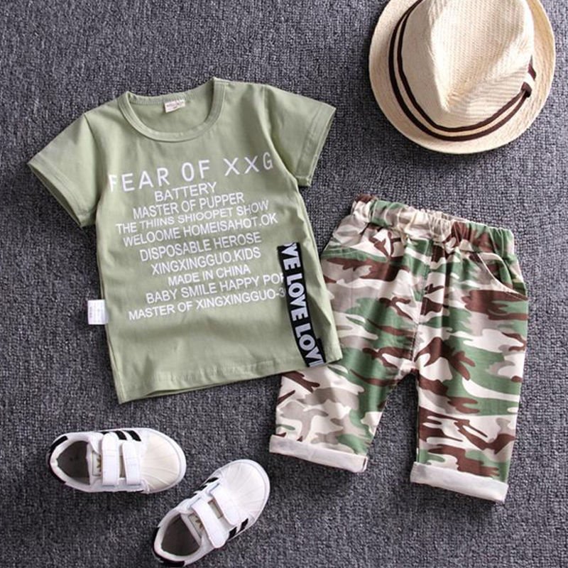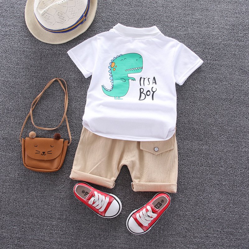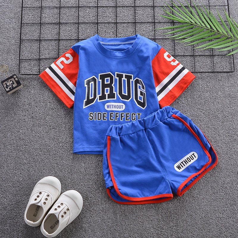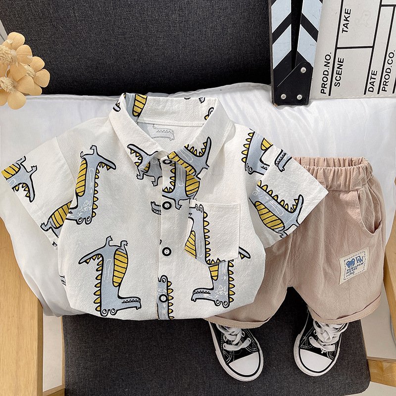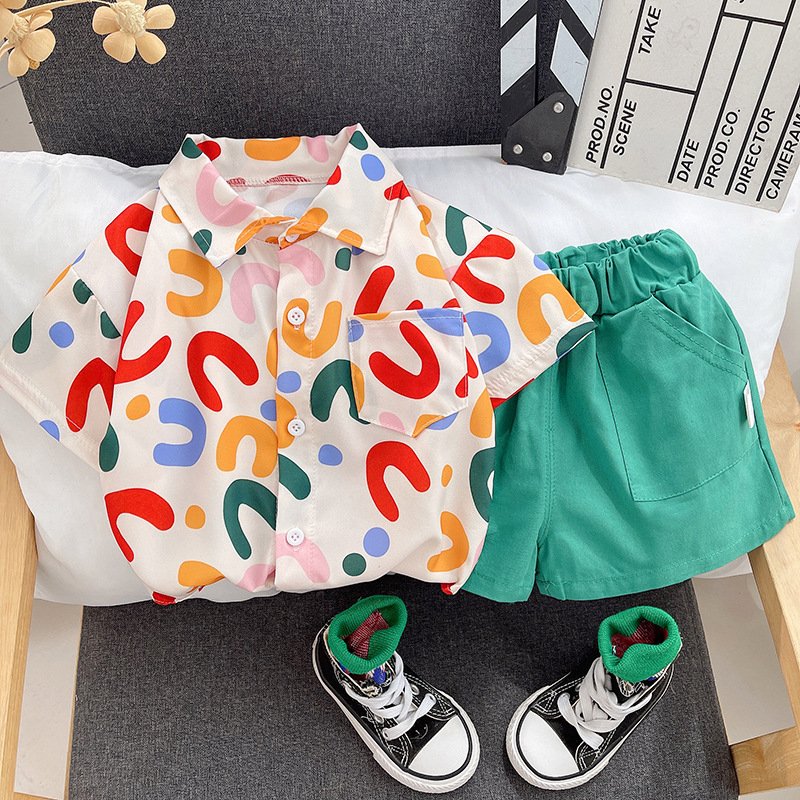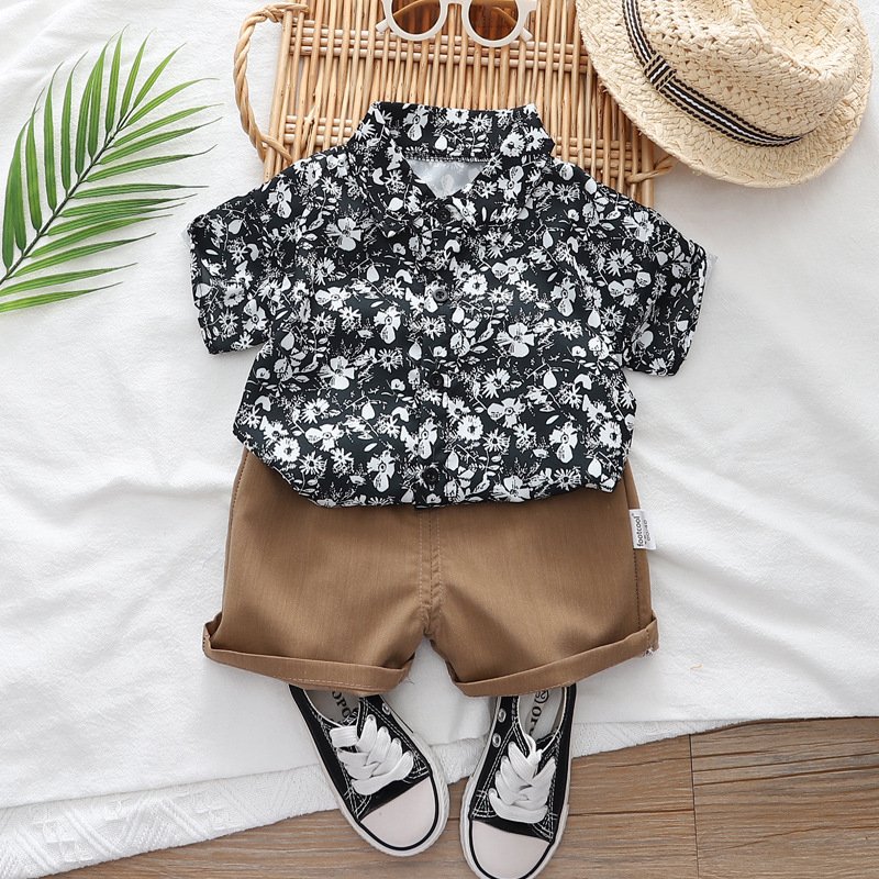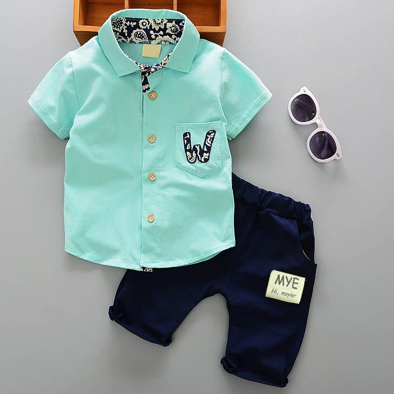 Kids Fashion Short-Sleeved Stripe Polo Shirt And Short Two-Piece Set
