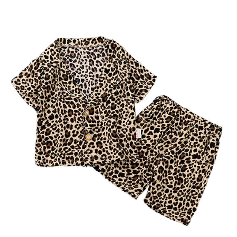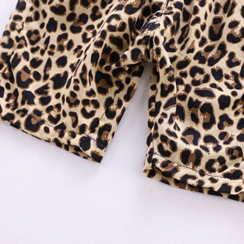 Kids Fashion Single-breasted Leopard Tops And Shorts Set