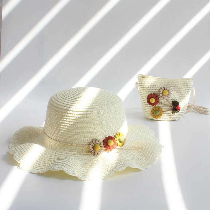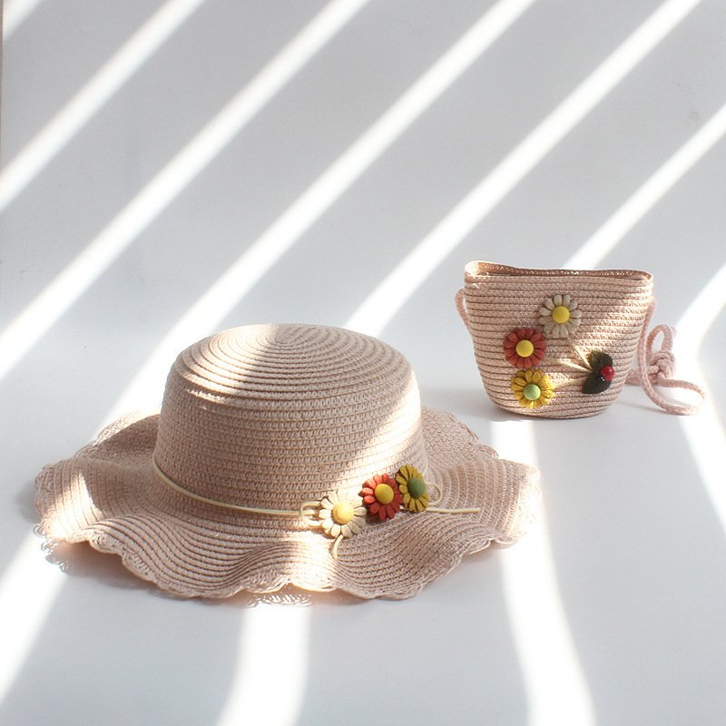Kids Fashion Sun Hat Straw Floral Crossbody Bag Set
