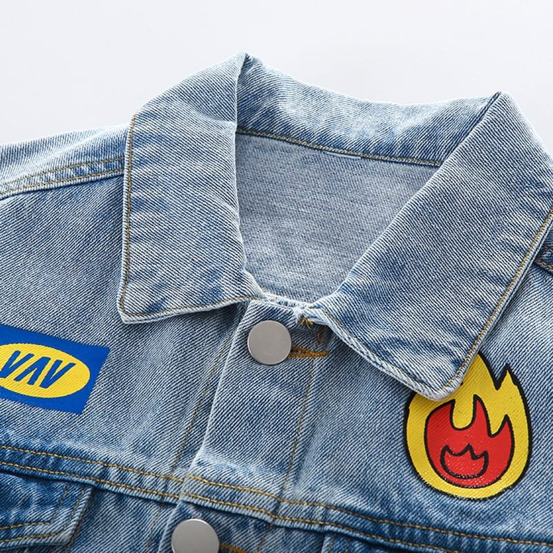 Kids Fashion Torch Pattern Letter Printed Denim Jacket