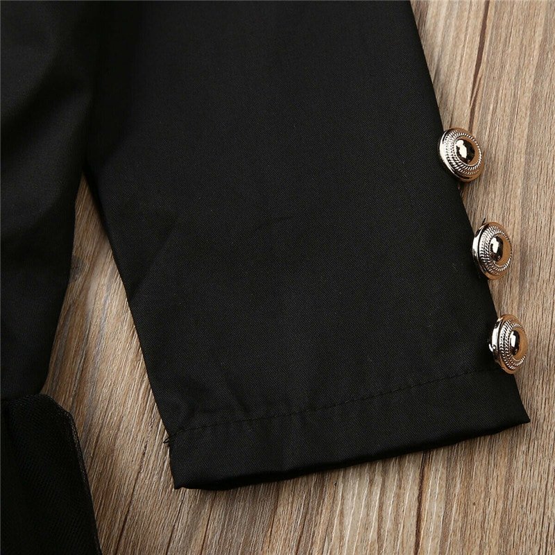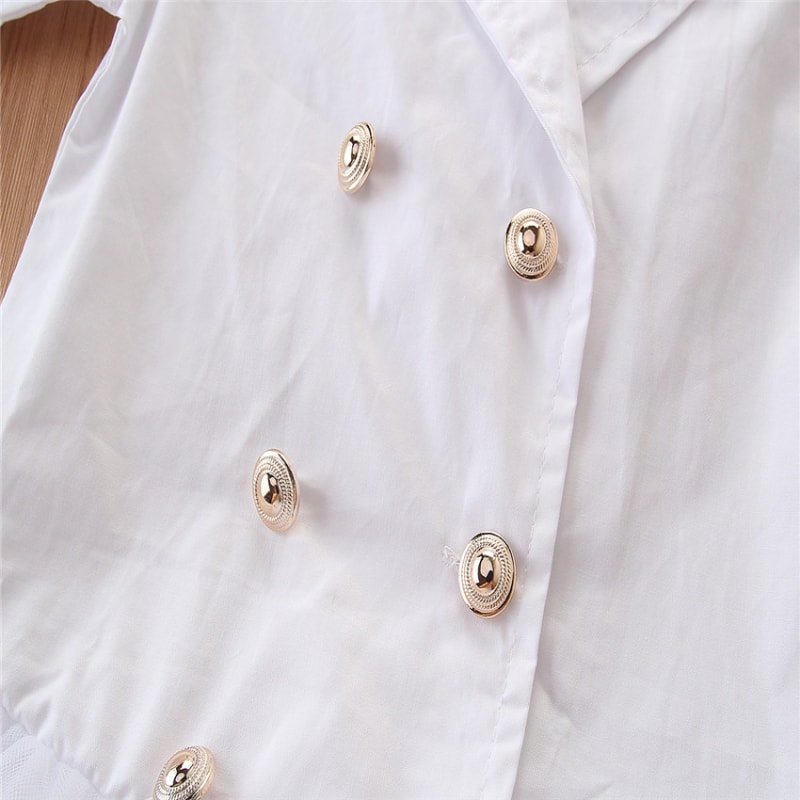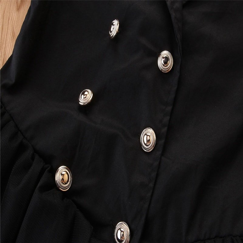 Kids Fashionable Button Decoration Lace Dress