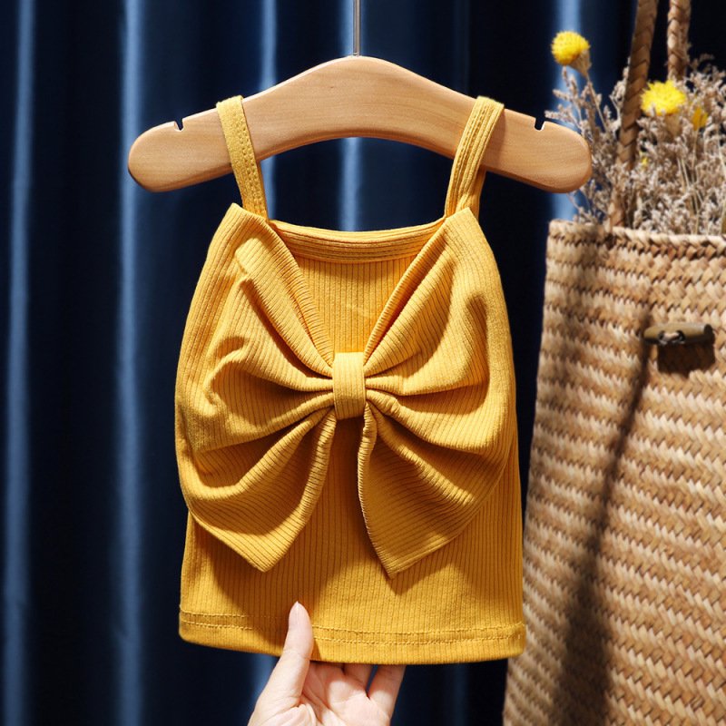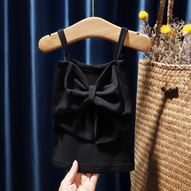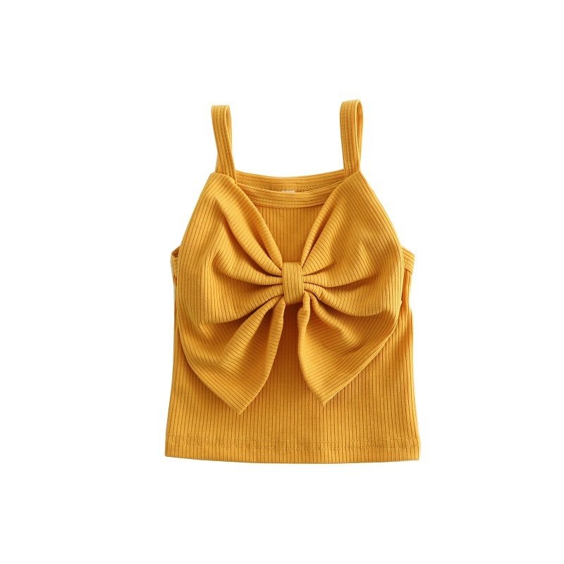 Kids Girls Basic Big Bow Sleeveless Solid Color Knitted Camisole