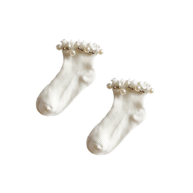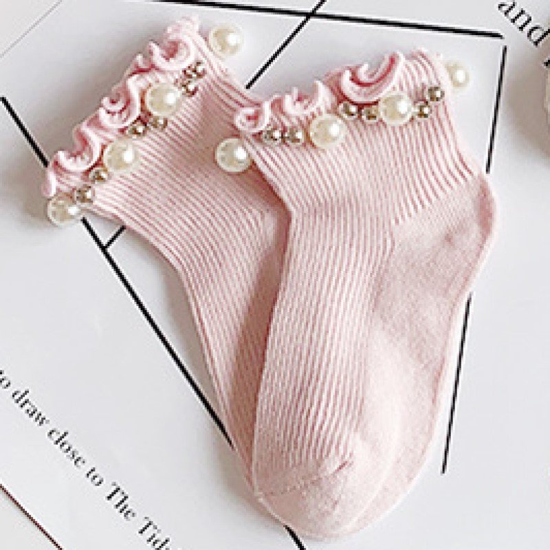 Kids Girls Basic Candy Color Pearl Decor Stringy Selvedge Princess Socks