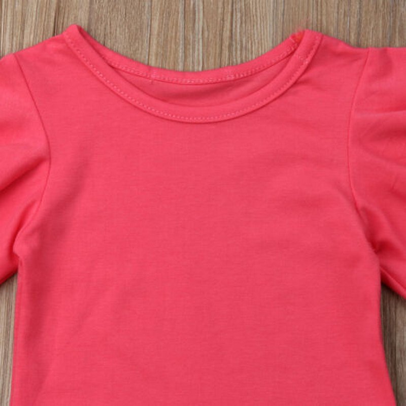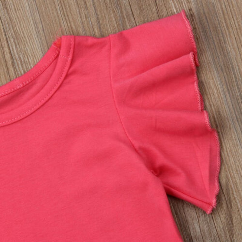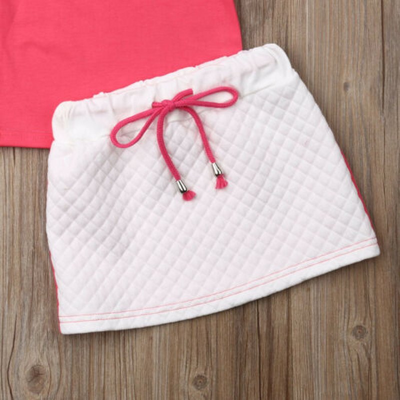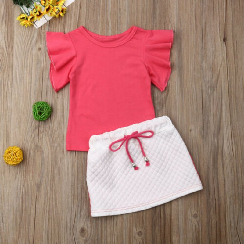 Kids Girls Basic Fly Sleeve Round Neck Short Sleeve T-Shirt And Elastic Tutu Skirt Set