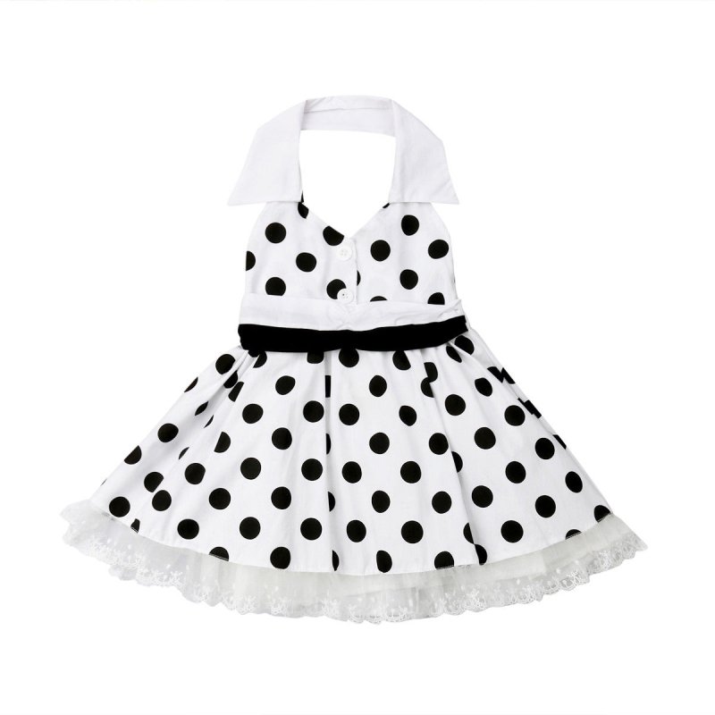 Kids Girls Basic Lapel Sleeveless Backless Polka Dot All Over Print Lace Design Dress