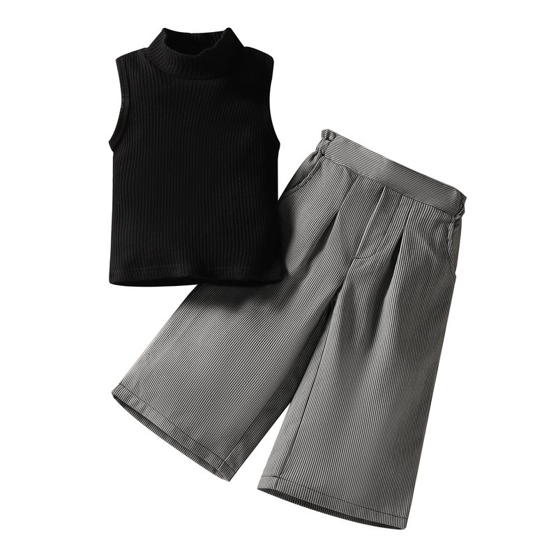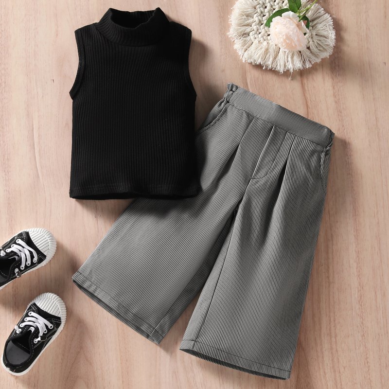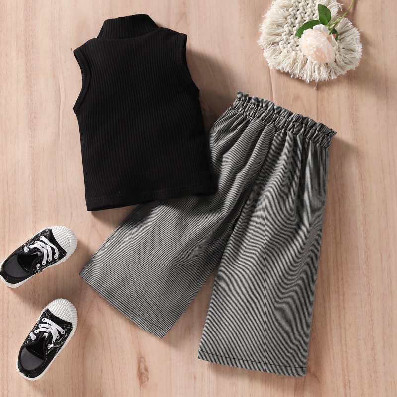 Kids Girls Basic Round Neck Sleeveless Knit Vest And Wide Leg Pants Set
