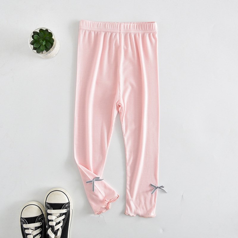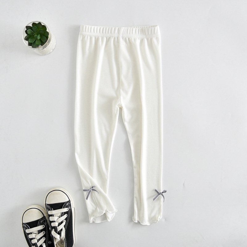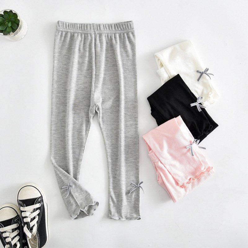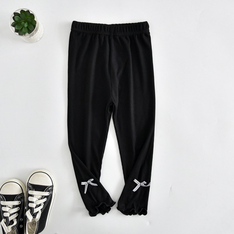 Kids Girls Basic Solid Color Bow Elastic Leggings