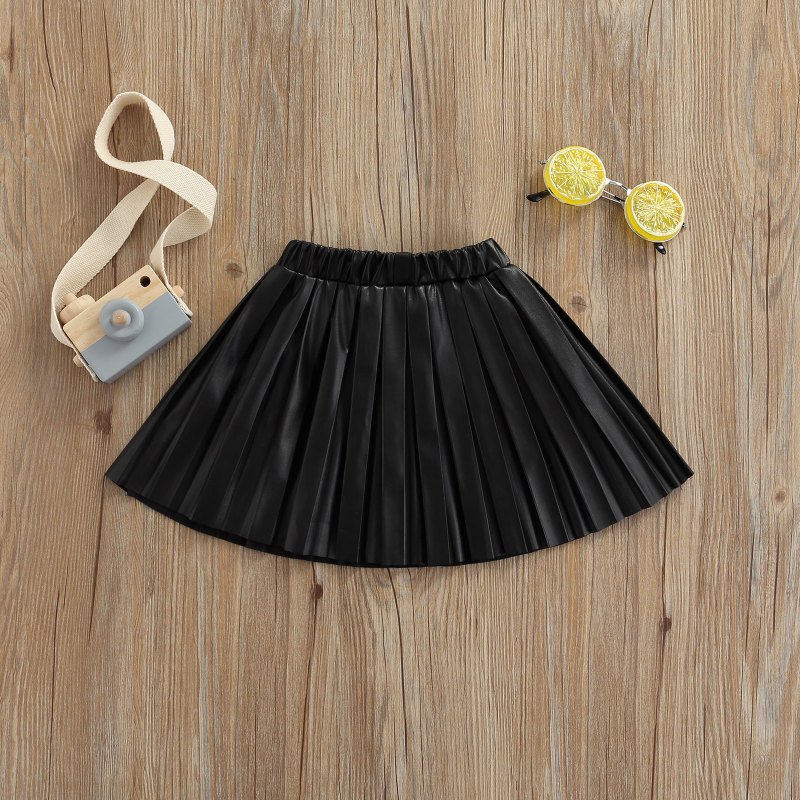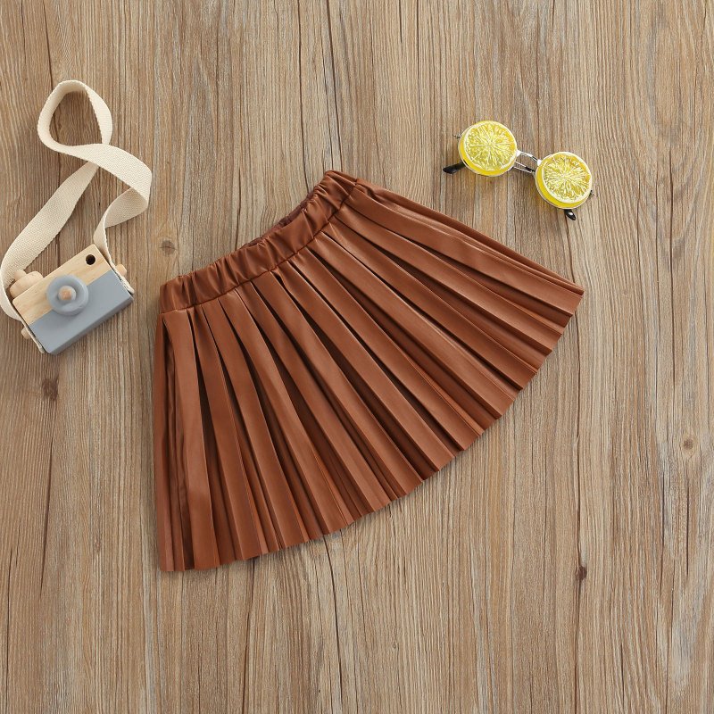 Kids Girls Basic Solid Color Elastic Pleated Skirt