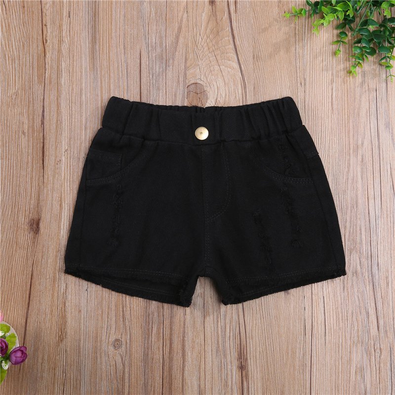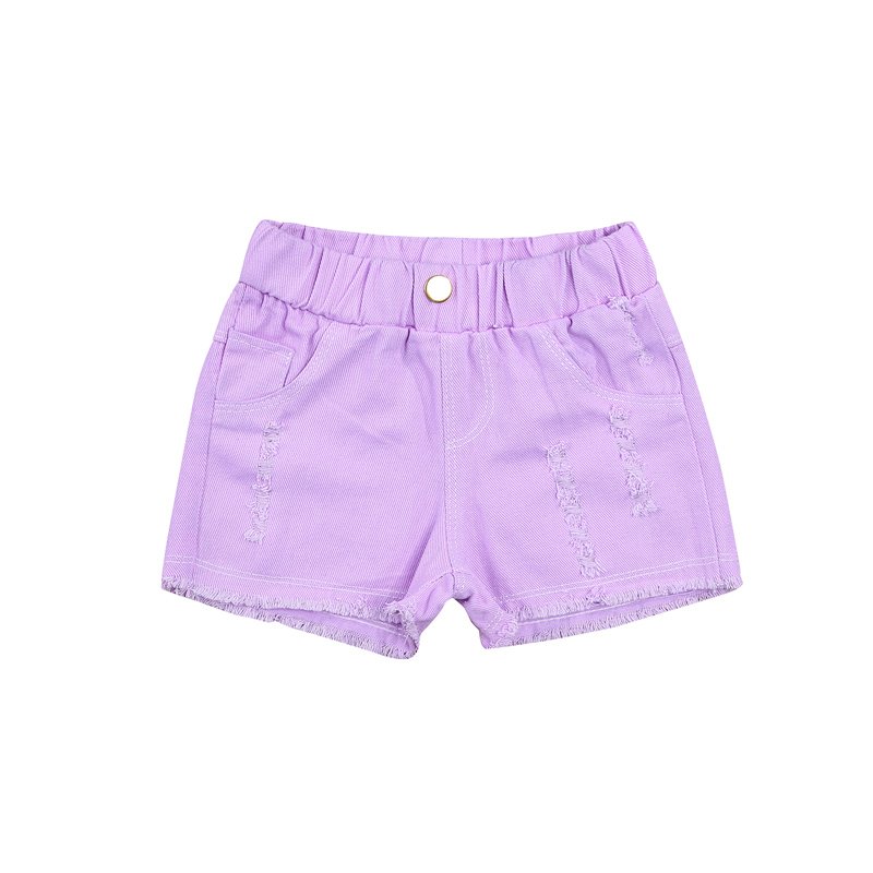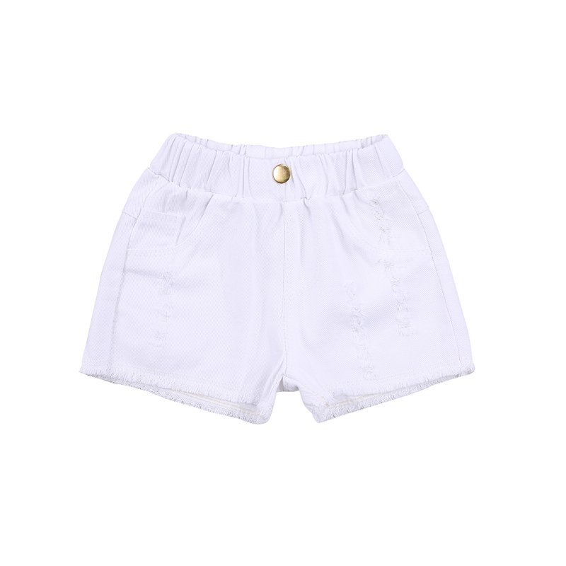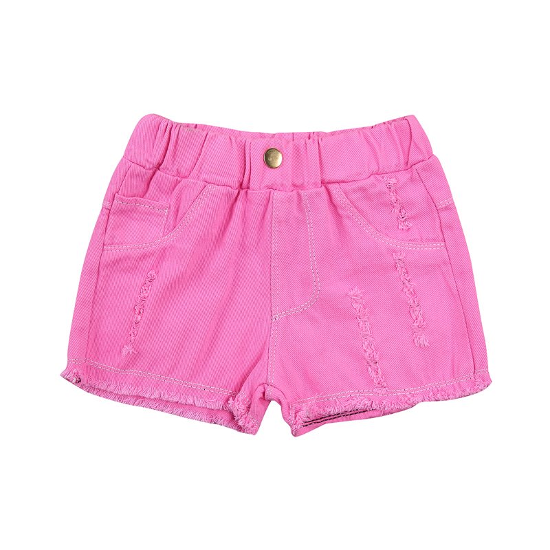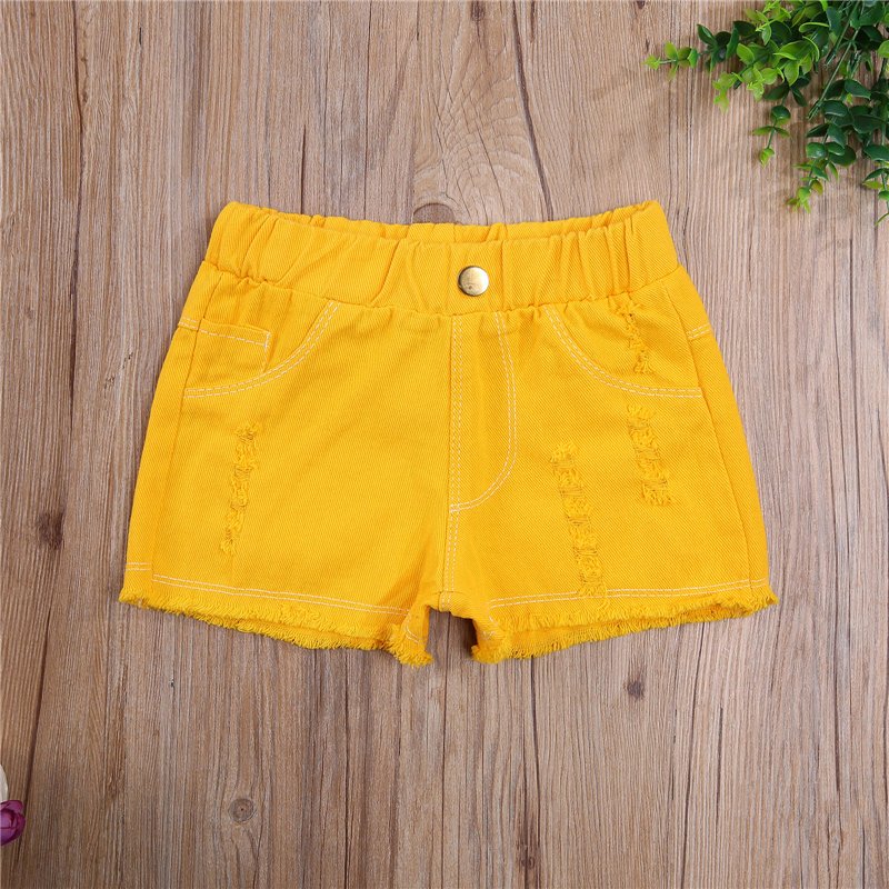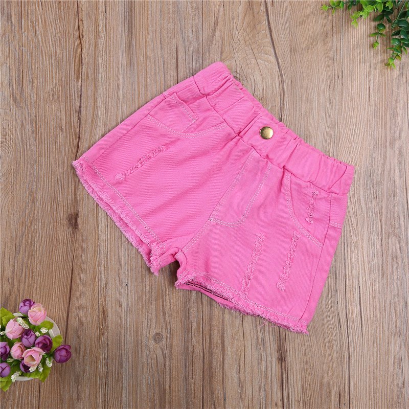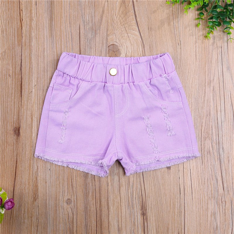 Kids Girls Basic Solid Color High Elastic Waist Ripped Denim Shorts