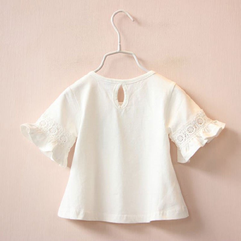 Kids Girls Basic Solid Color Round Neck Short Flare Sleeve Lace T-Shirt