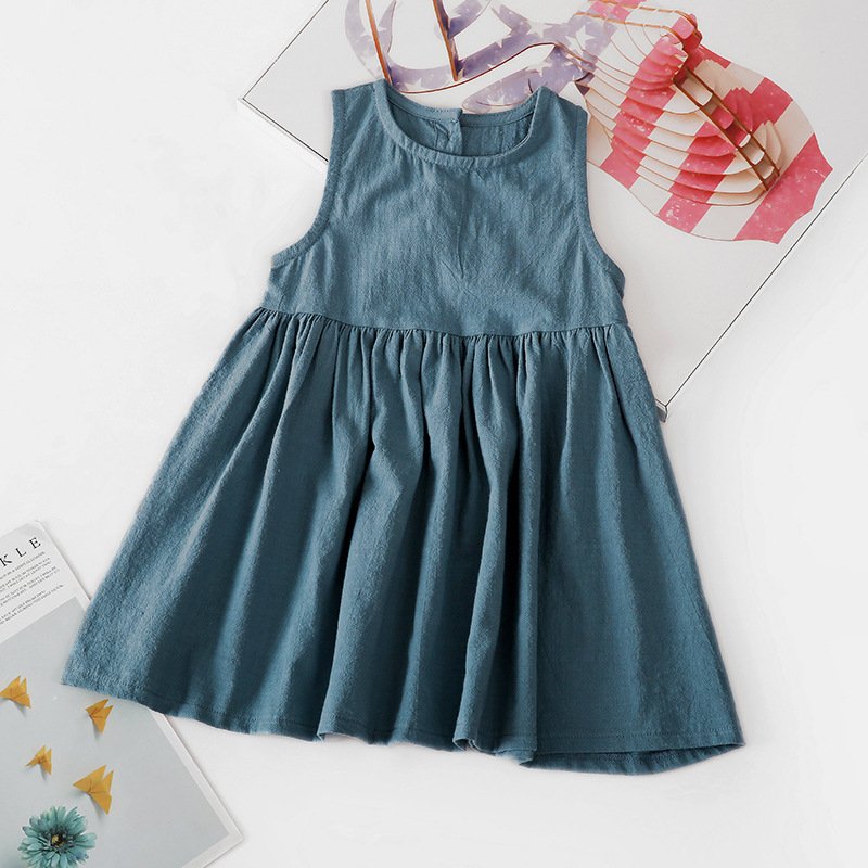 Kids Girls Basic Solid Color Round Neck Sleeveless Pleated Dress