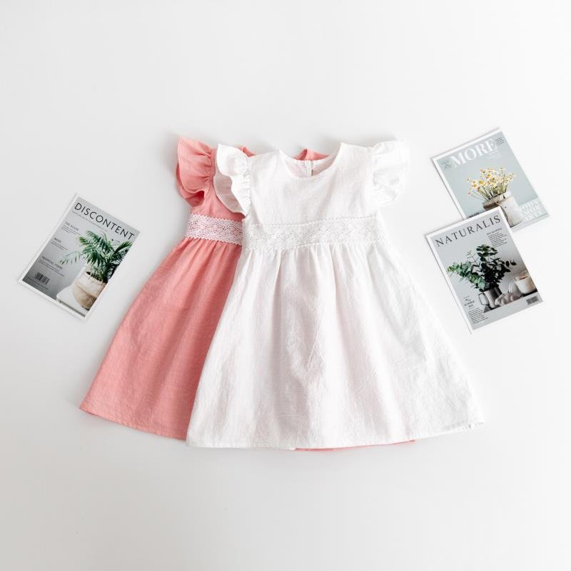 Kids Girls Basic Solid Color Round Neck Sleeveless Ruffled Dress