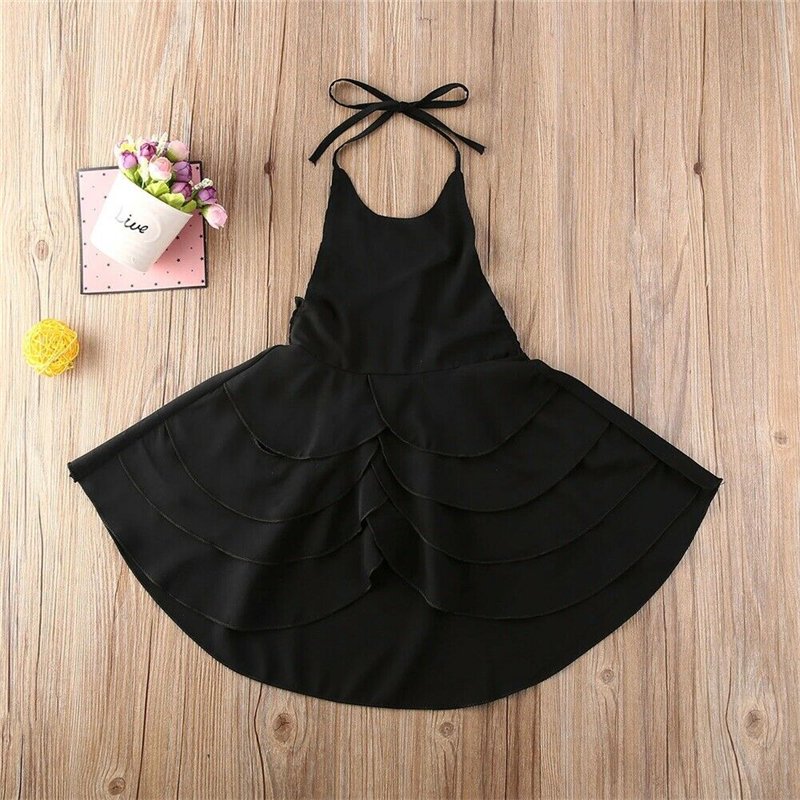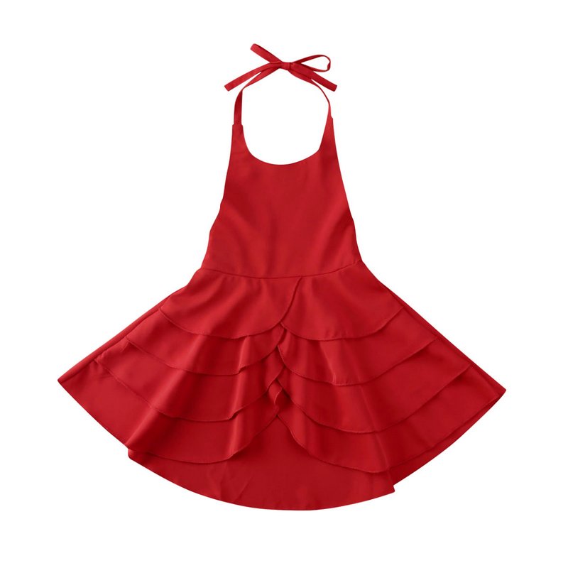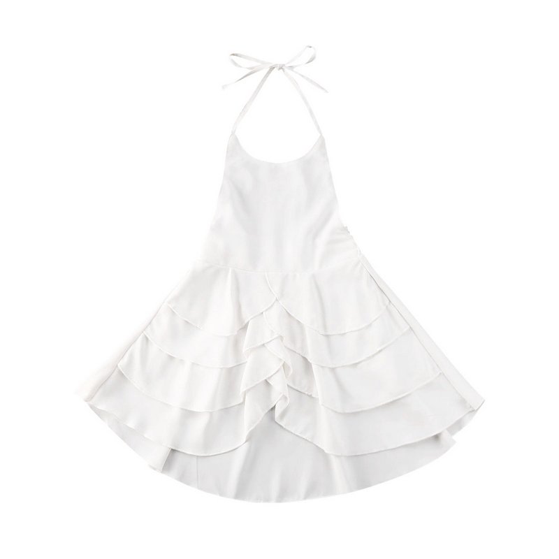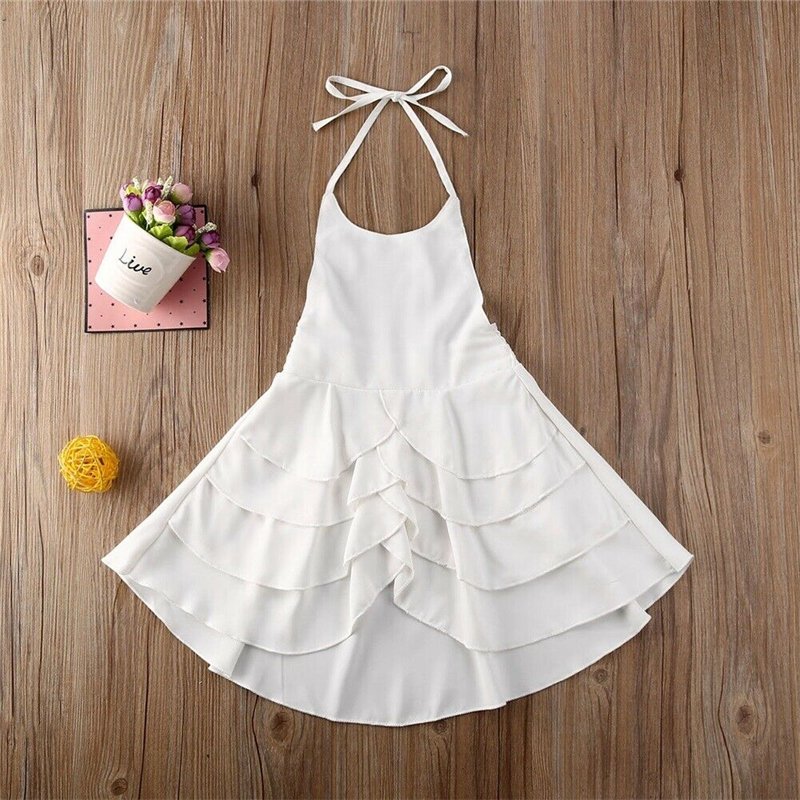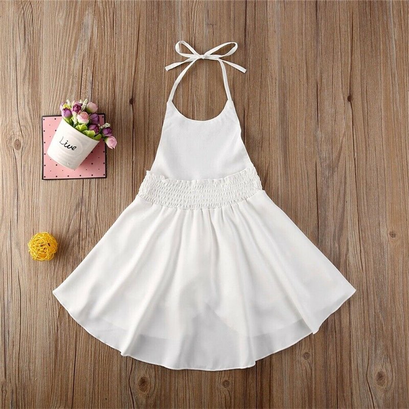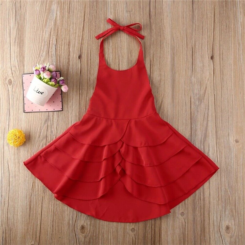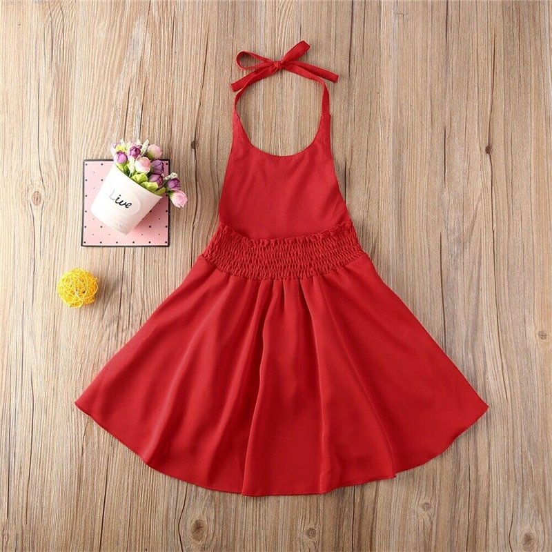 Kids Girls Basic Solid Color Ruffled Sleeveless Halter Beach Dress