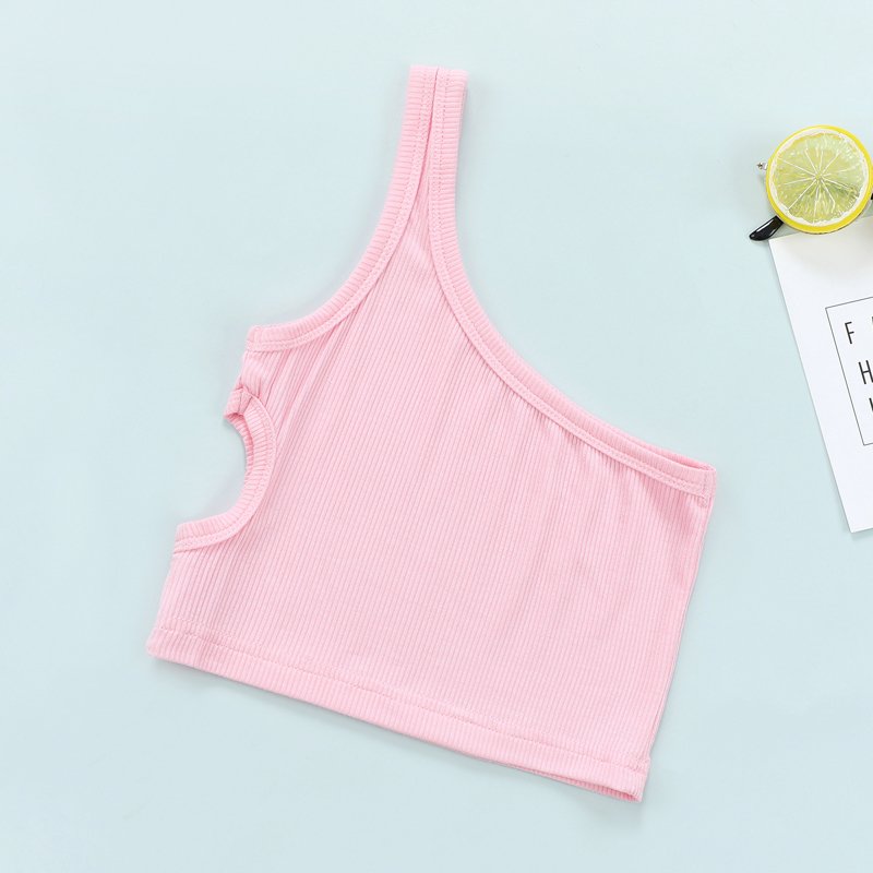Kids Girls Basic Solid Color Shoulder Strap Cut Out Causal Vest