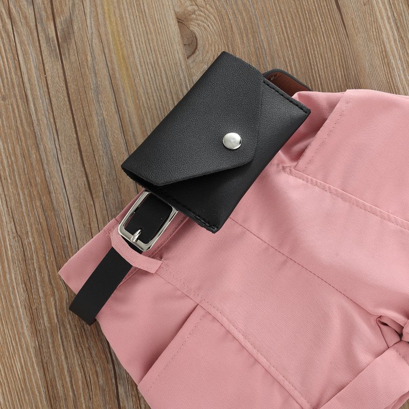 Kids Girls Basic Solid Color Sleeveless Ribbed Stand-up Collar Tops And Shorts With Small Waist Bag Set