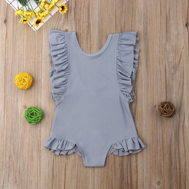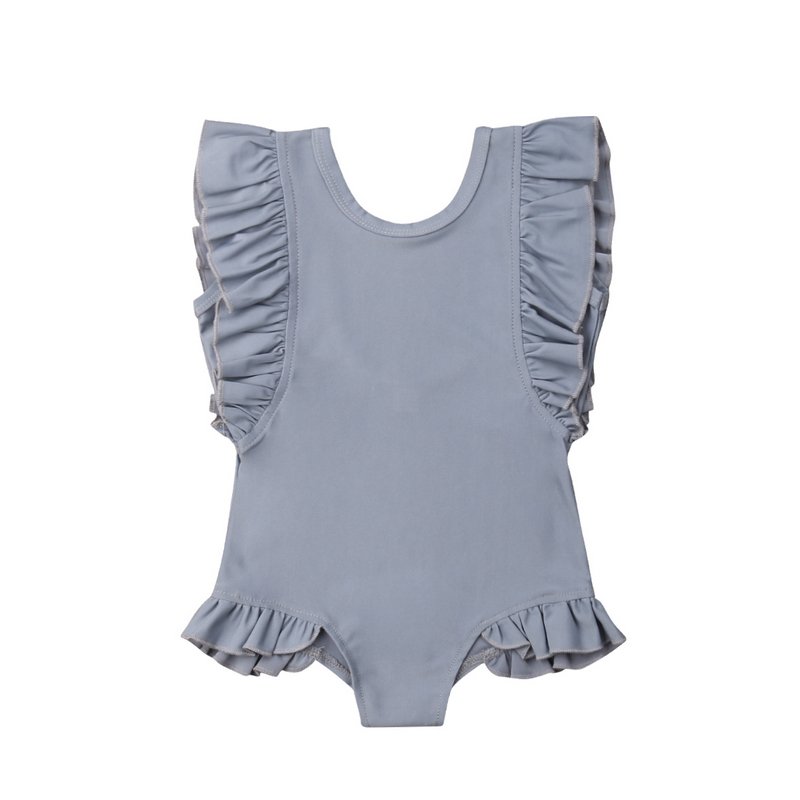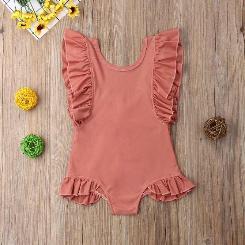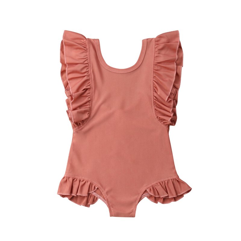 Kids Girls Basic Solid Color Sleeveless Ruffled Swimwear