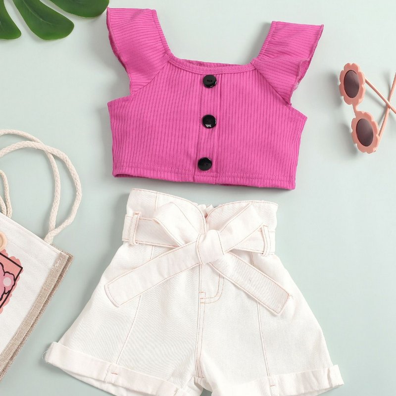 Kids Girls Basic Solid Square Neck Sleeveless Top And High Waist Shorts Set