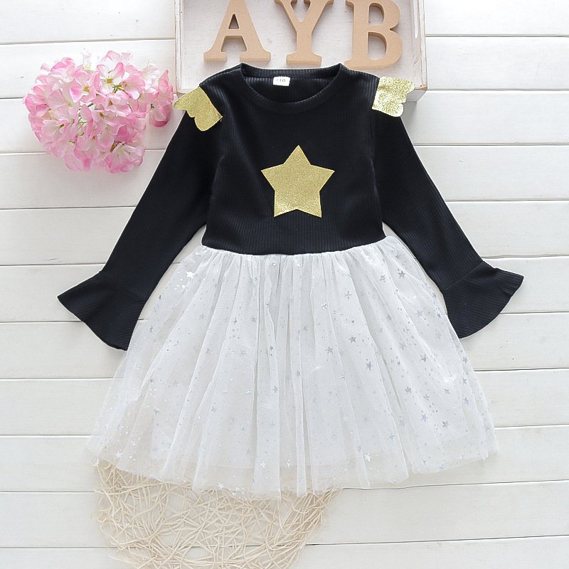 Kids Girls Basic Star Round Neck Sleeveless Mesh Dress