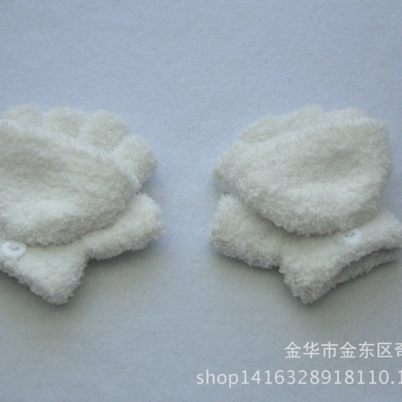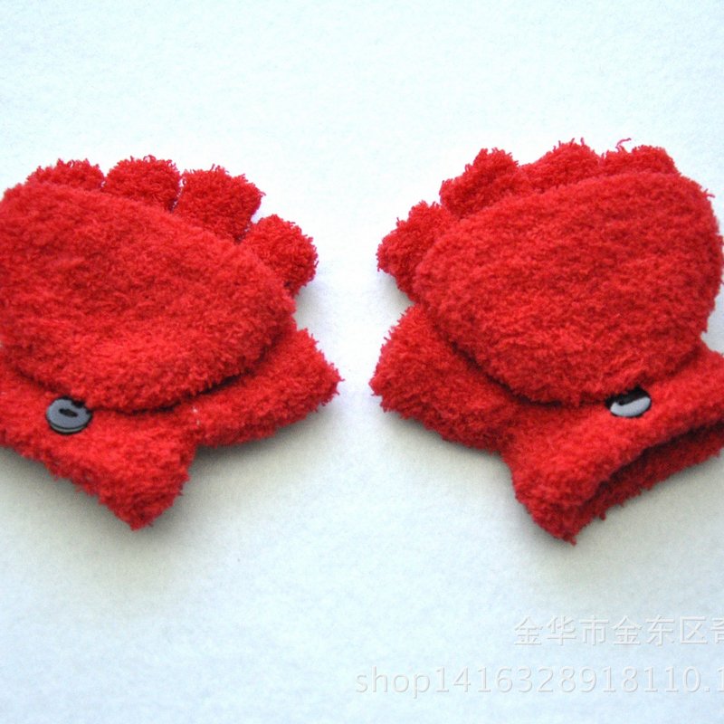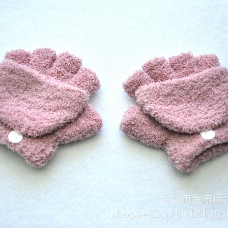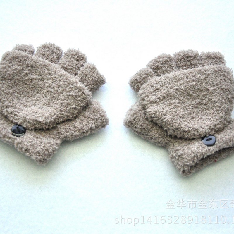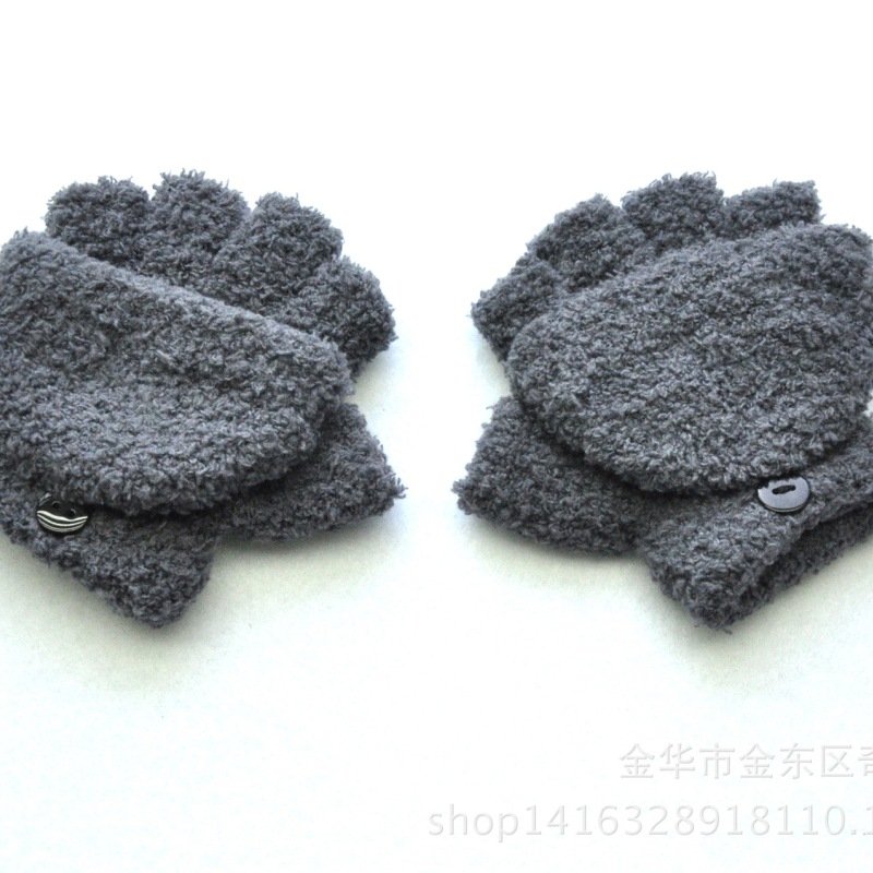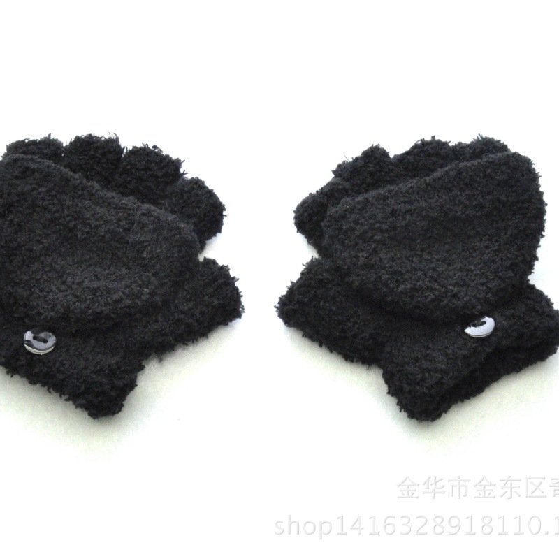 Kids Girls Boy Fashion Winter Warm Fleece Coral Fleece Thickened Half Finger Flap Gloves