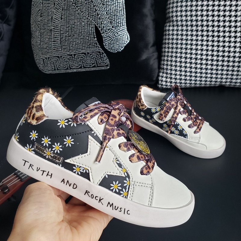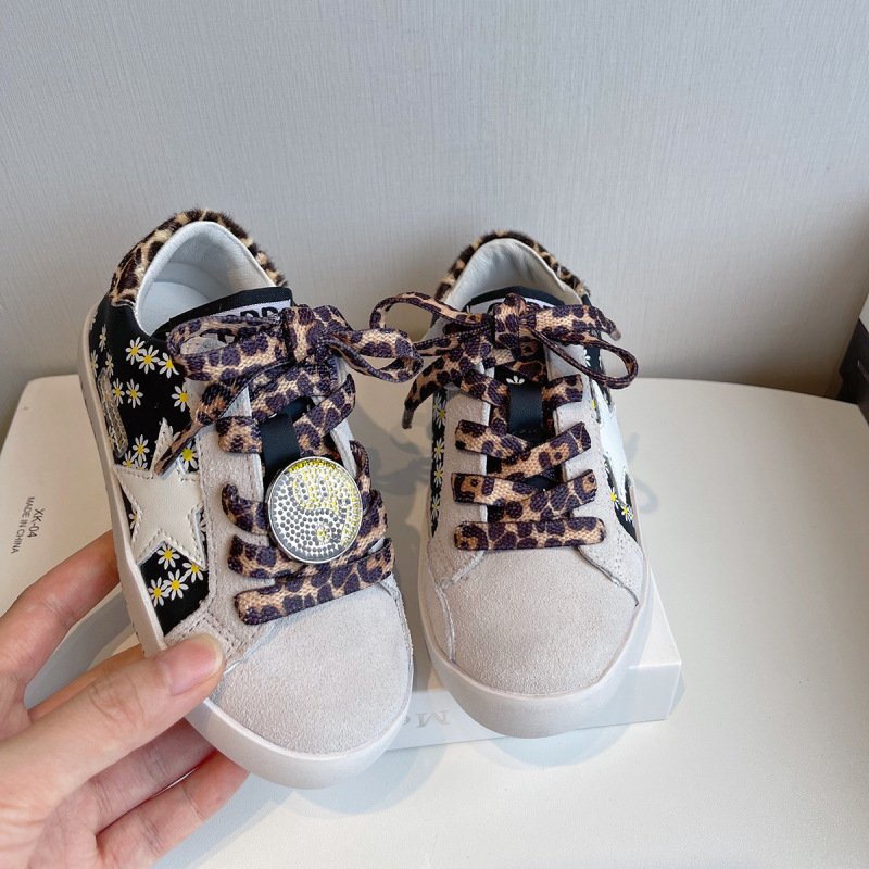 KIDS Girls Boys Spring Autumn Fashion Casual Color Matching PU Floral Pattern Leopard Breathable Star Board Shoes