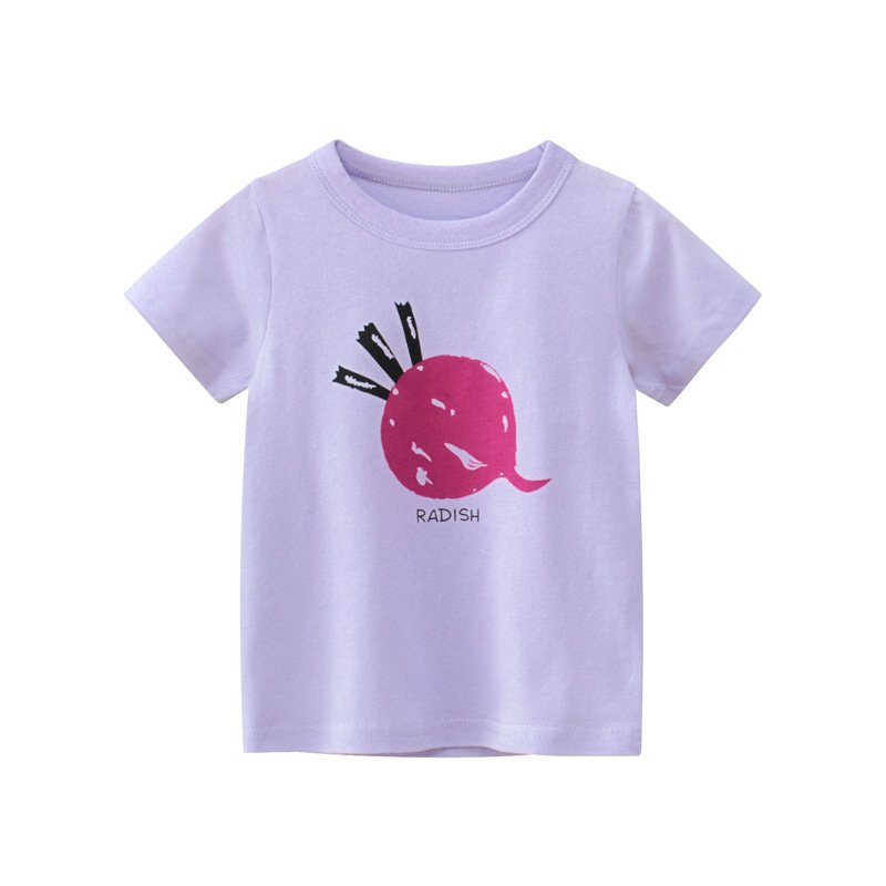 Kids Girls Casual Cartoon Fruit Pattern Round Neck Short Sleeve Basic T-Shirt