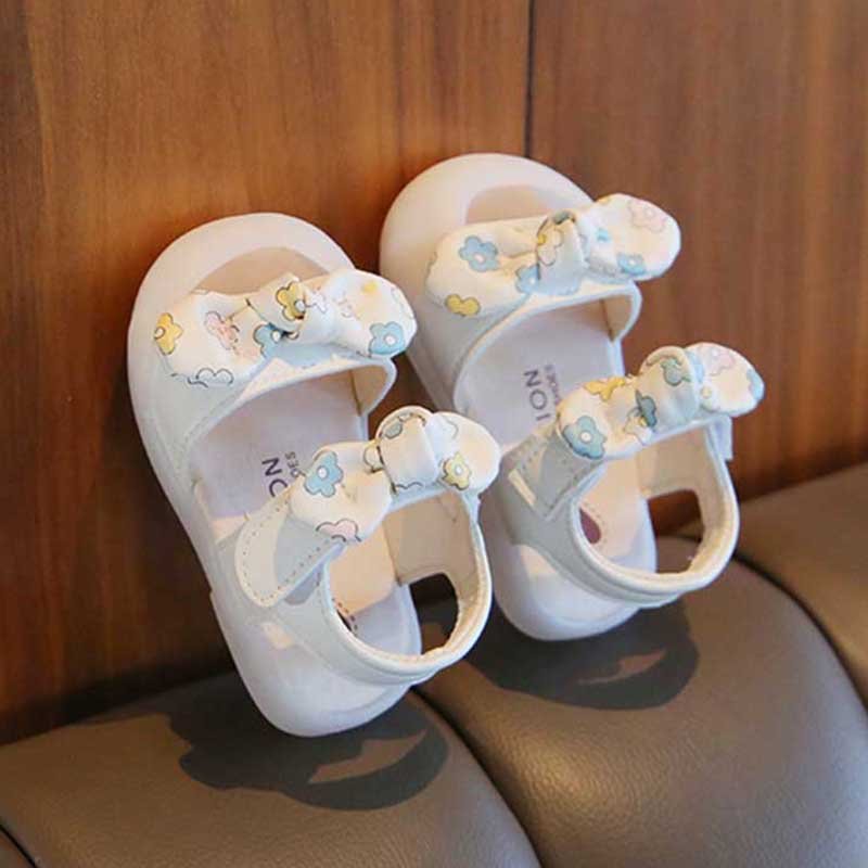 Kids Girls Casual Cute Bow Floral Velcro Cover Toe Sandals