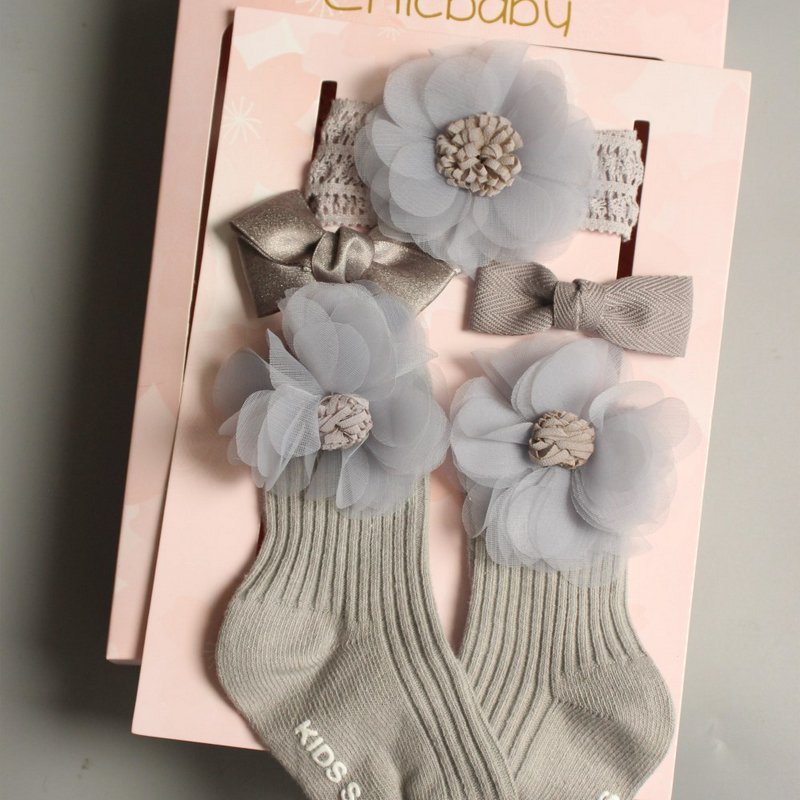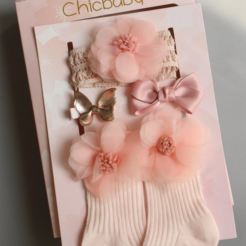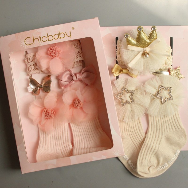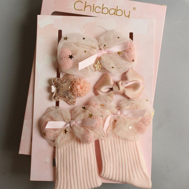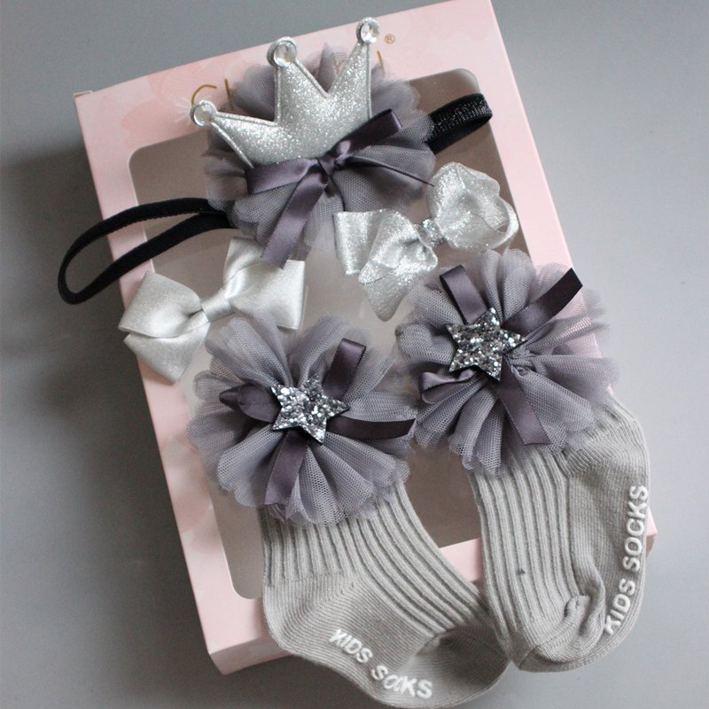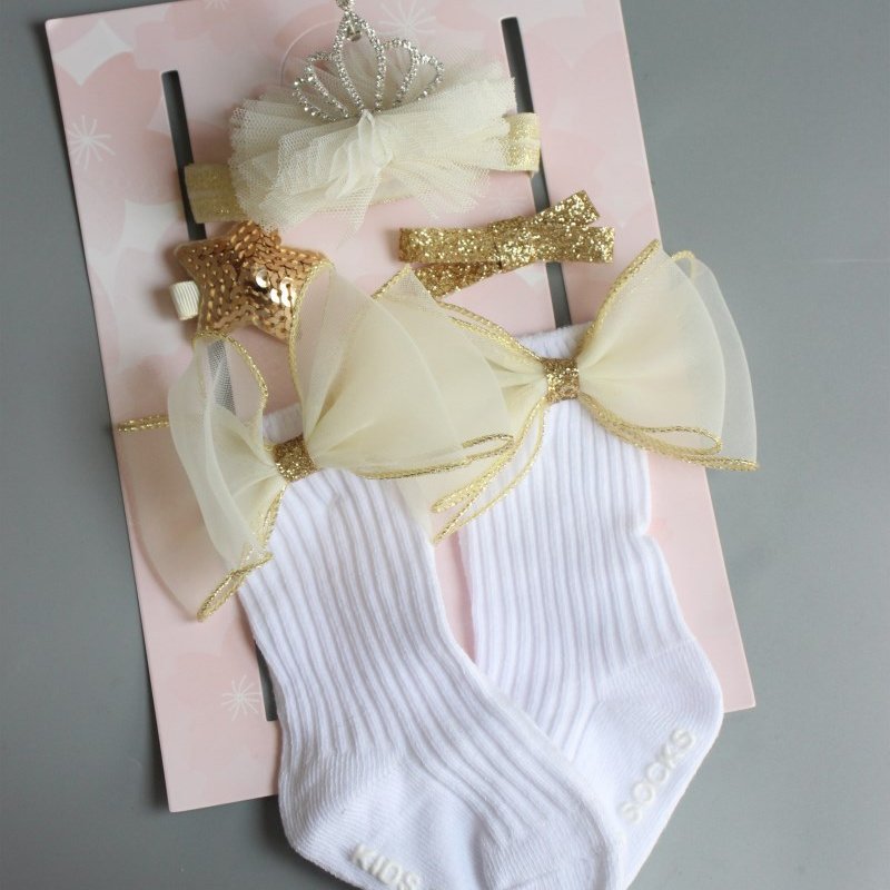 Kids Girls Casual Cute Bow Hair Band Socks Sets