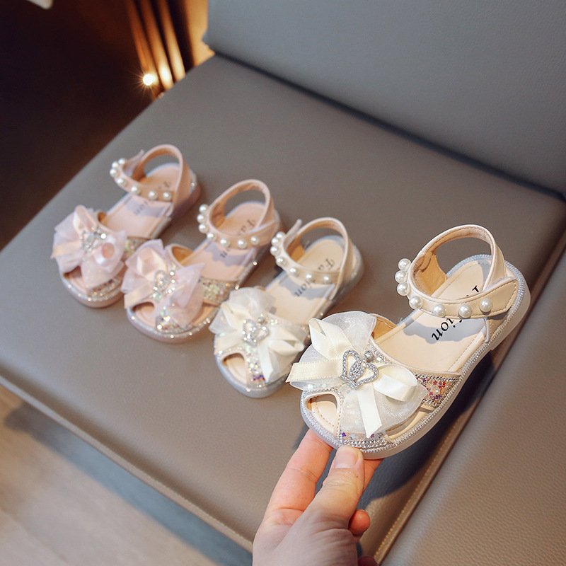 Kids Girls Casual Cute Bow Velcro Flat Sandals